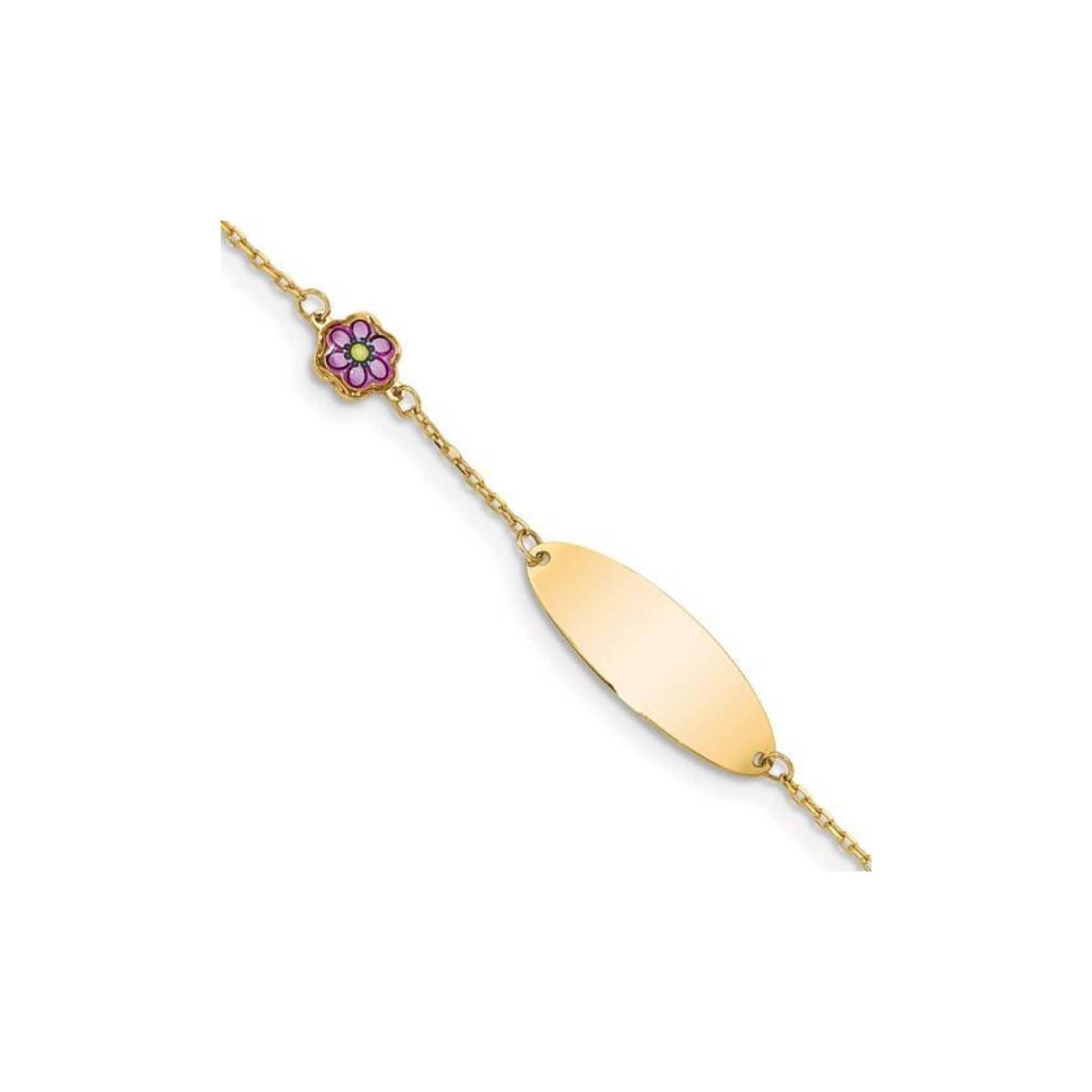 14K Children's Enamel Flower with .5in ext. ID Engravable Bracelet