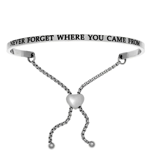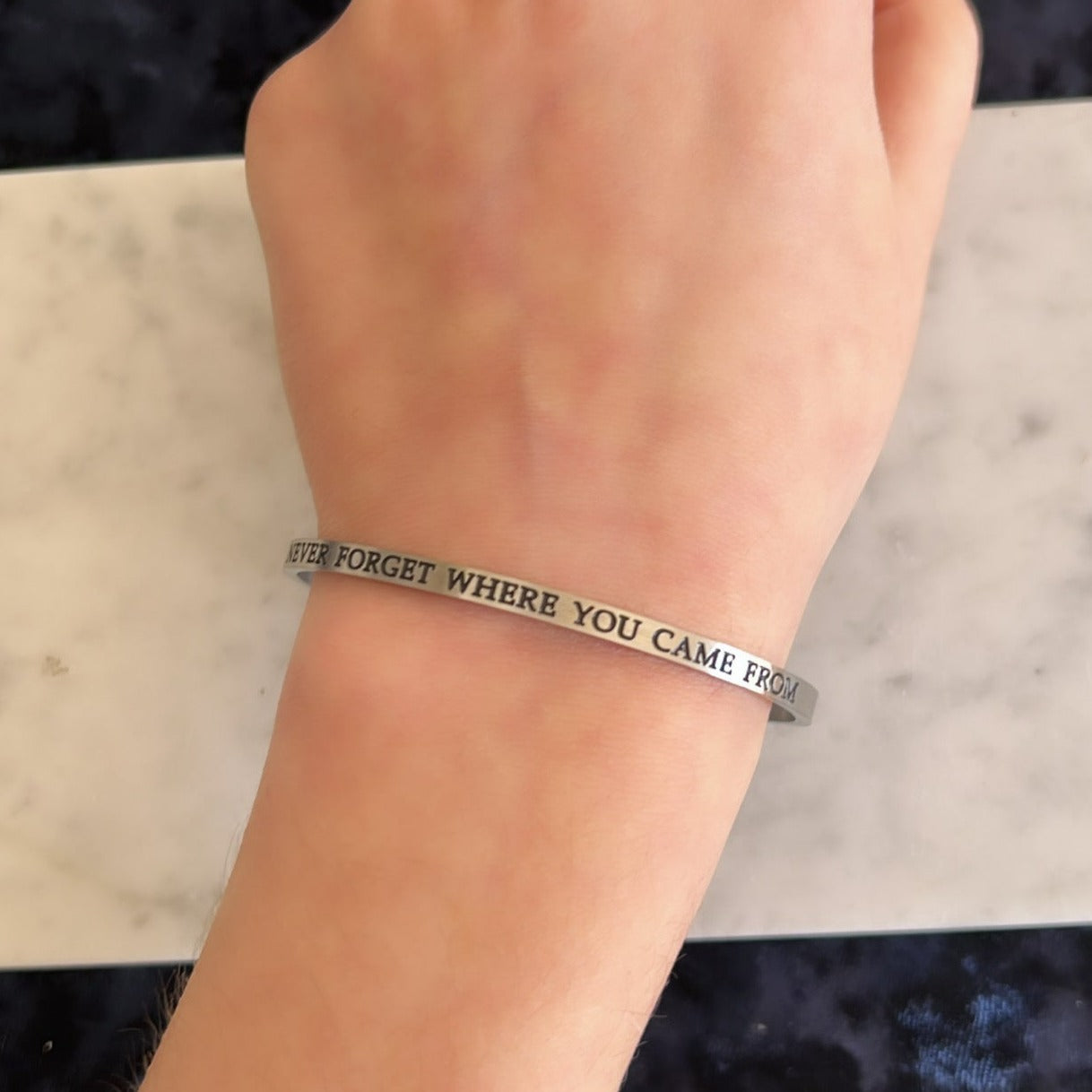 "Never Forget Where You Came From" White Intuitions Bracelet Bangle