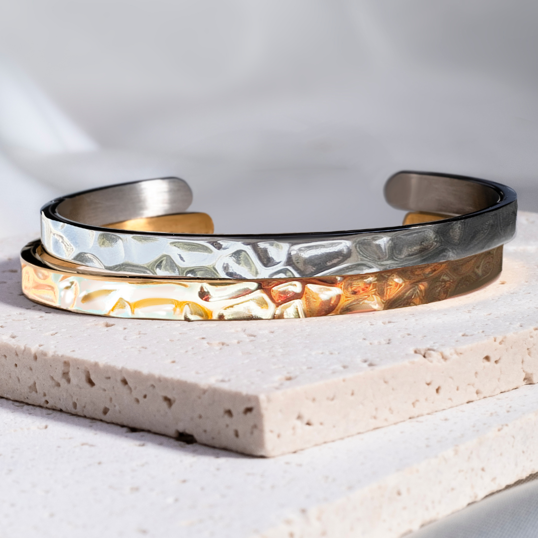 Introducing the Hammered Cuff, a thoughtfully crafted piece designed to uplift and inspire during life's challenging moments through words that speak to only you.