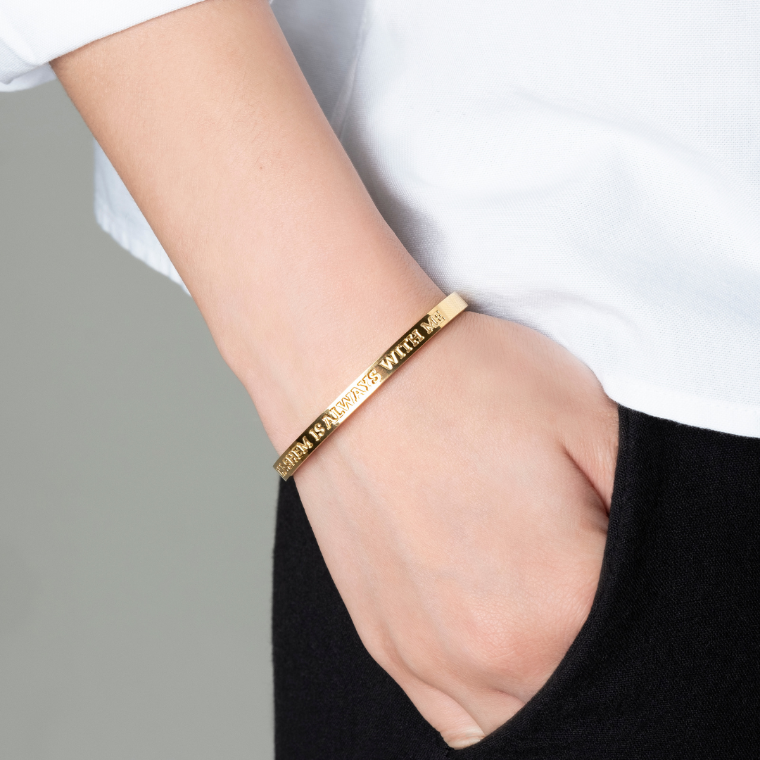 This best-selling bangle features an elegant yet durable design, along with an empowering engraved message to serve as your everyday reminder, affirmation, and inspiration.