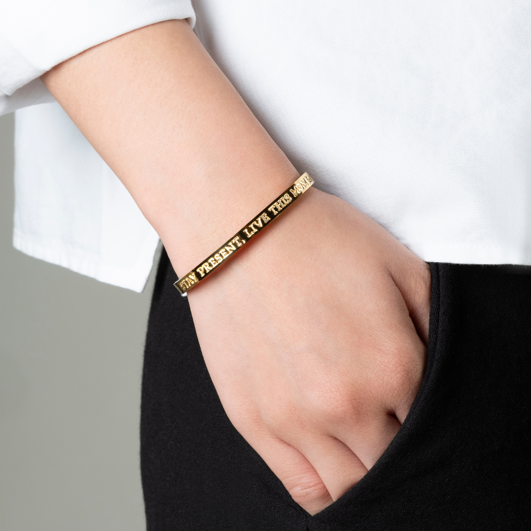 This best-selling bangle features an elegant yet durable design, along with an empowering engraved message to serve as your everyday reminder, affirmation, and inspiration.