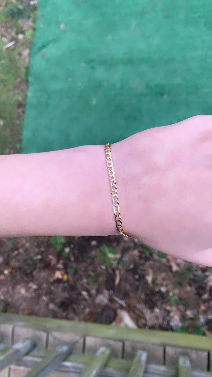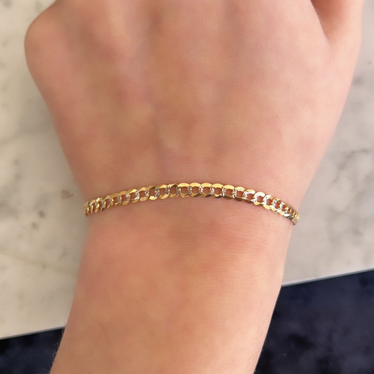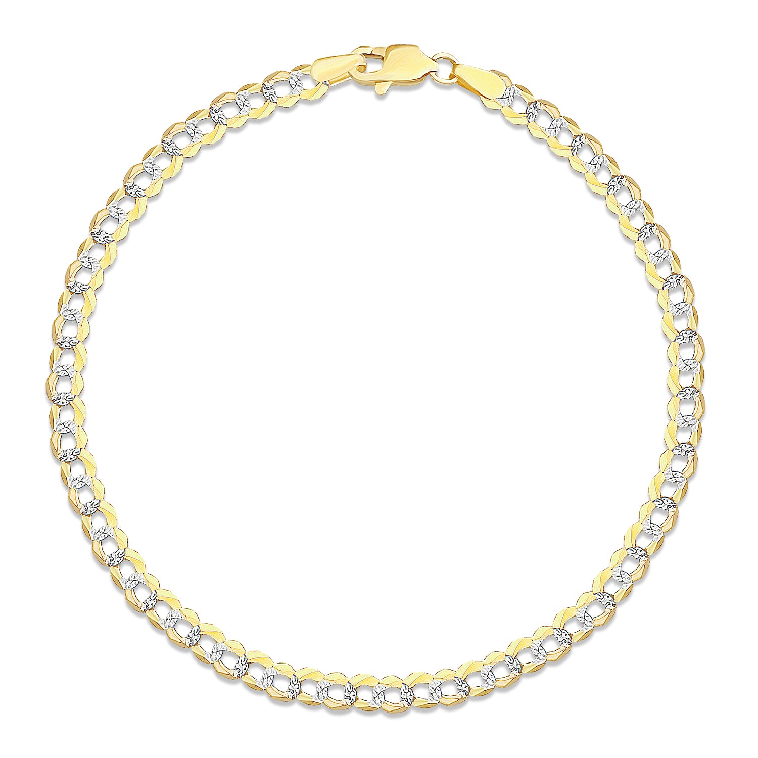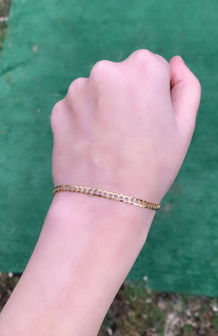 14K Gold 3.6mm White Pave Curb Chain Bracelet