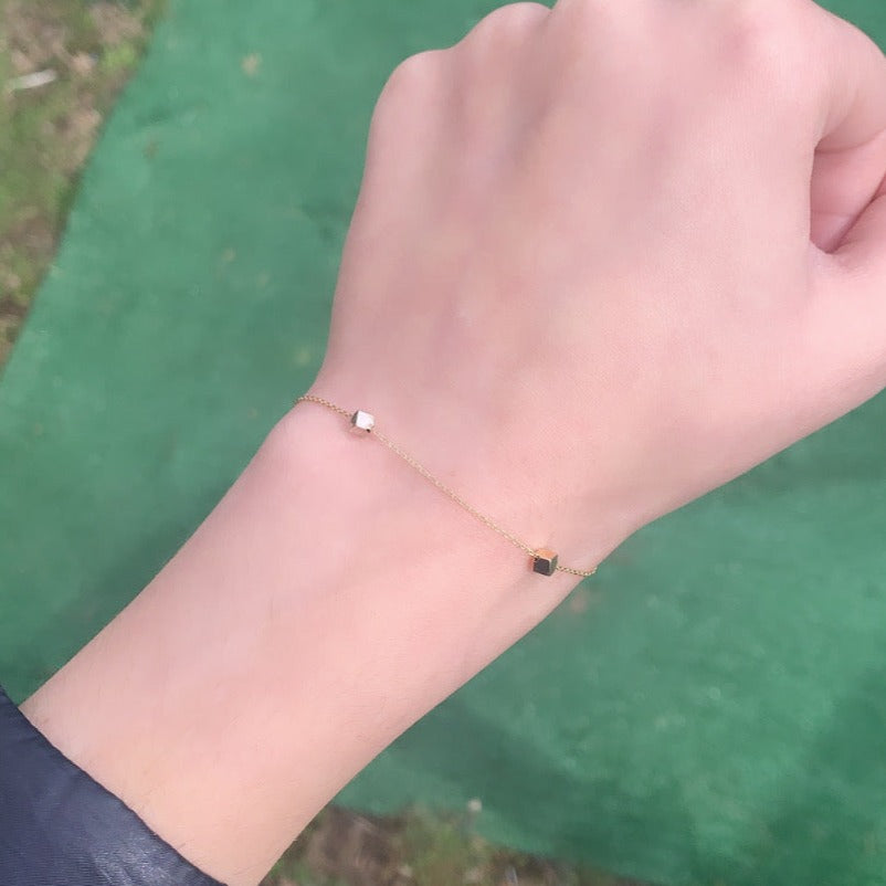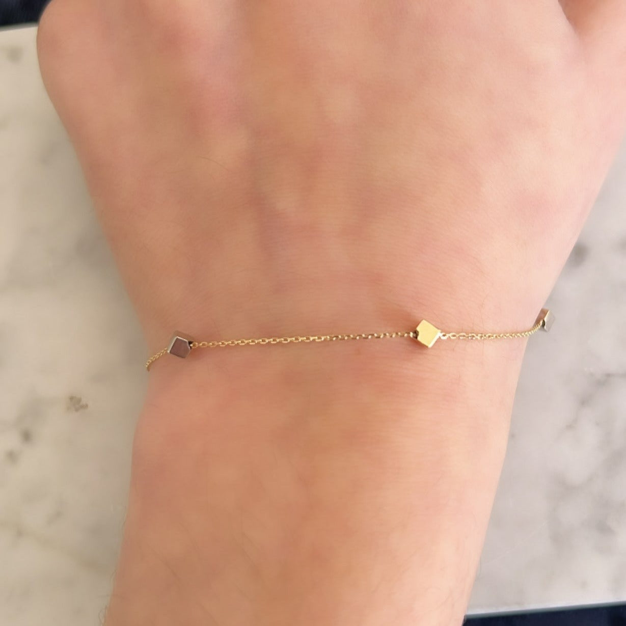 14K Gold Cube Bracelet