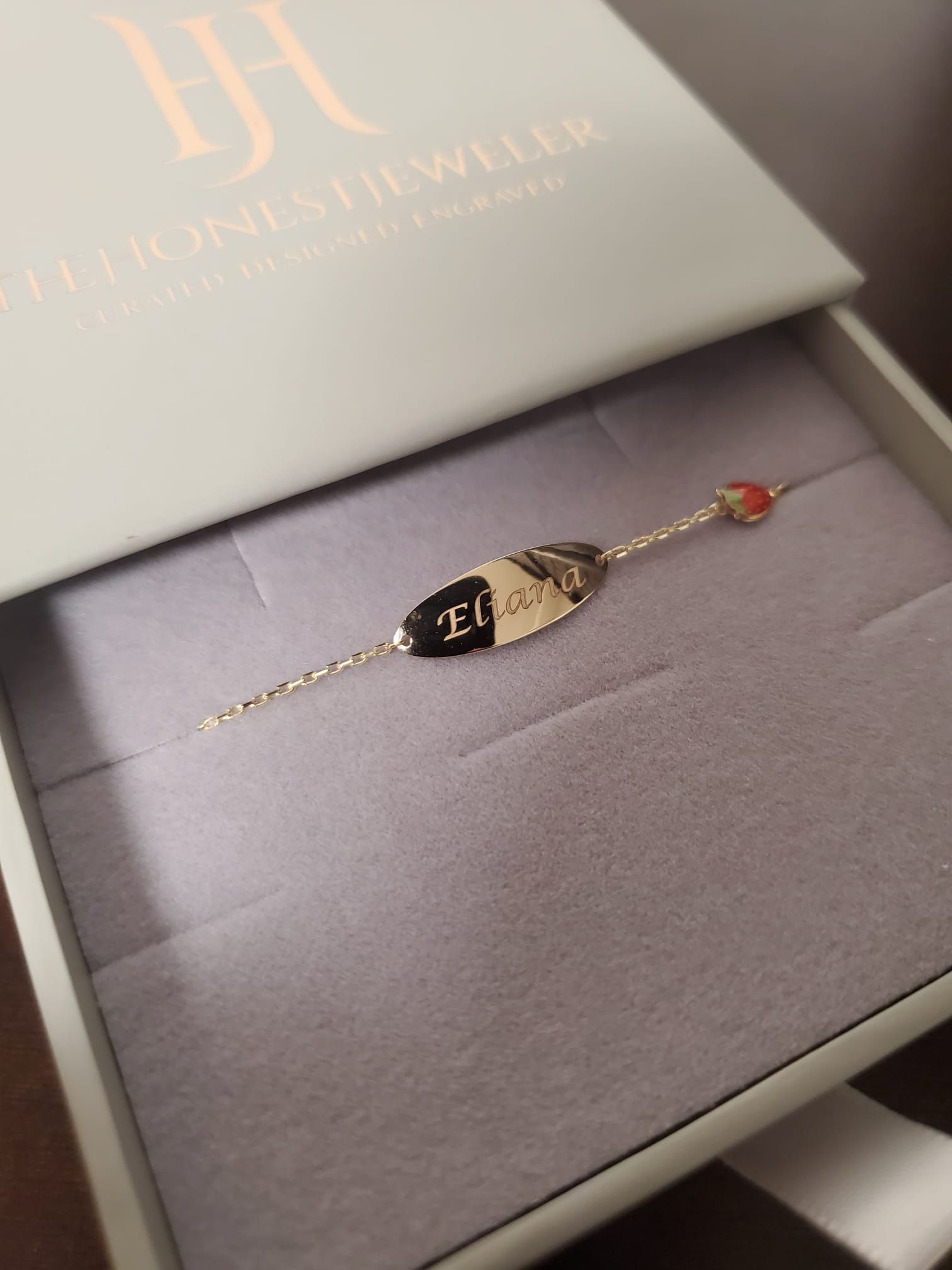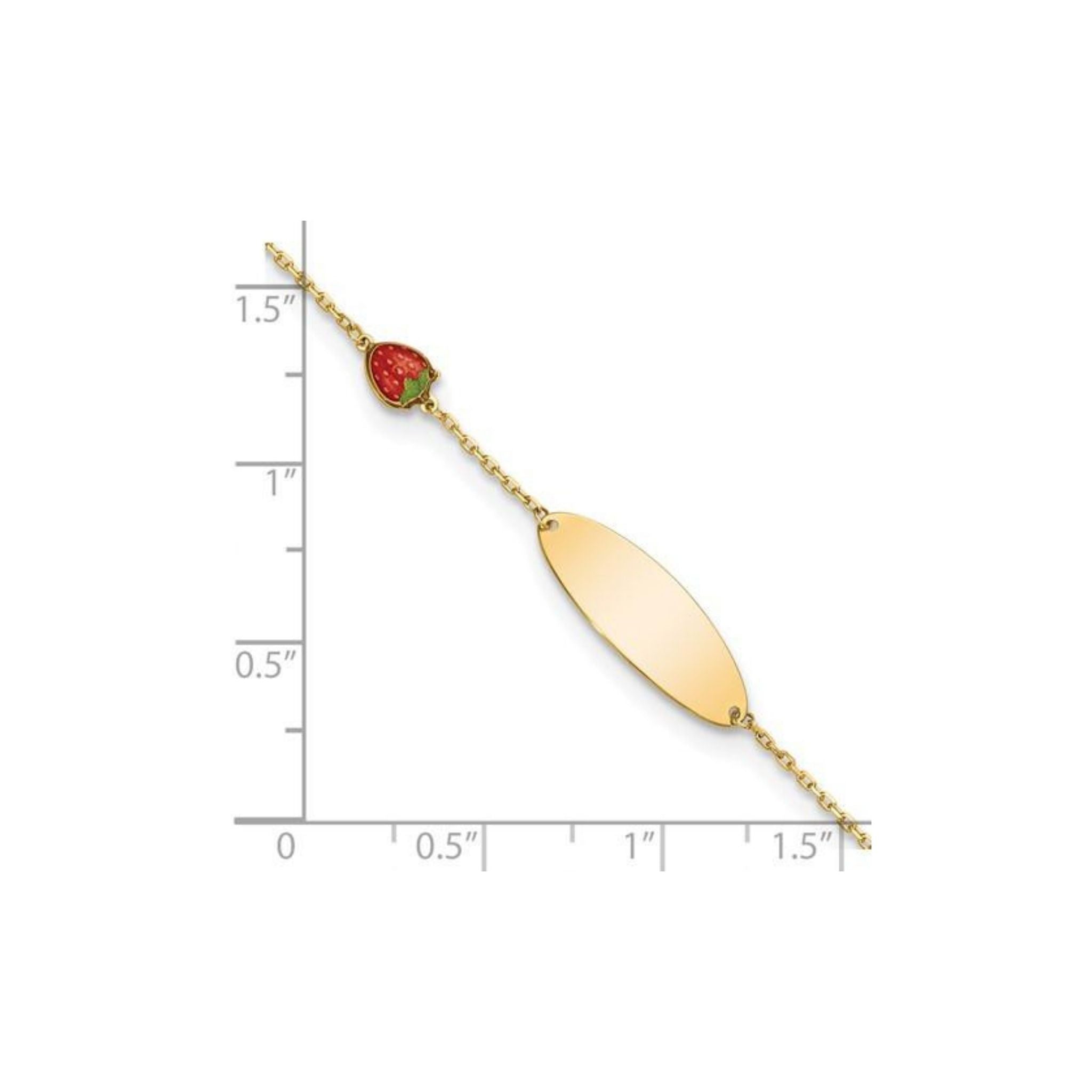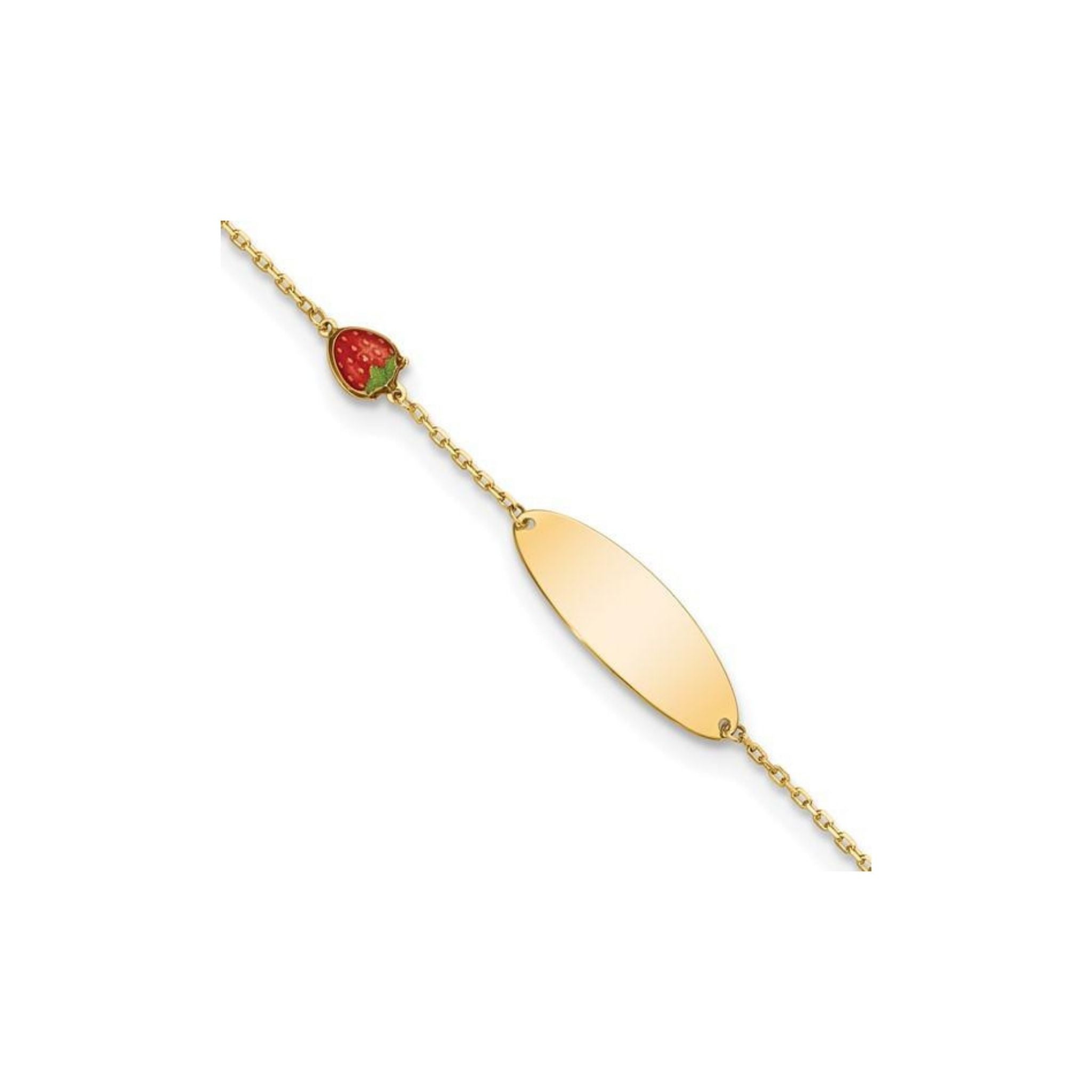 14k Gold Enameled Strawberry Baby ID 5.5in with .5 in Ext Engravable Bracelet