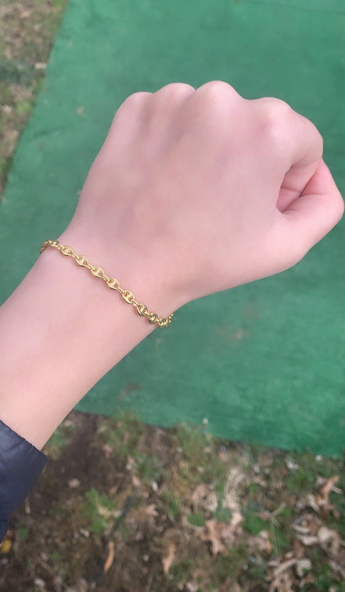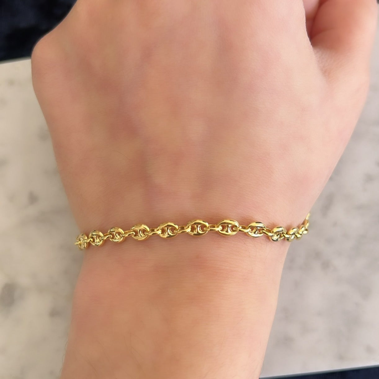 14K Gold Puffed Mariner Chain Bracelet, For Child
