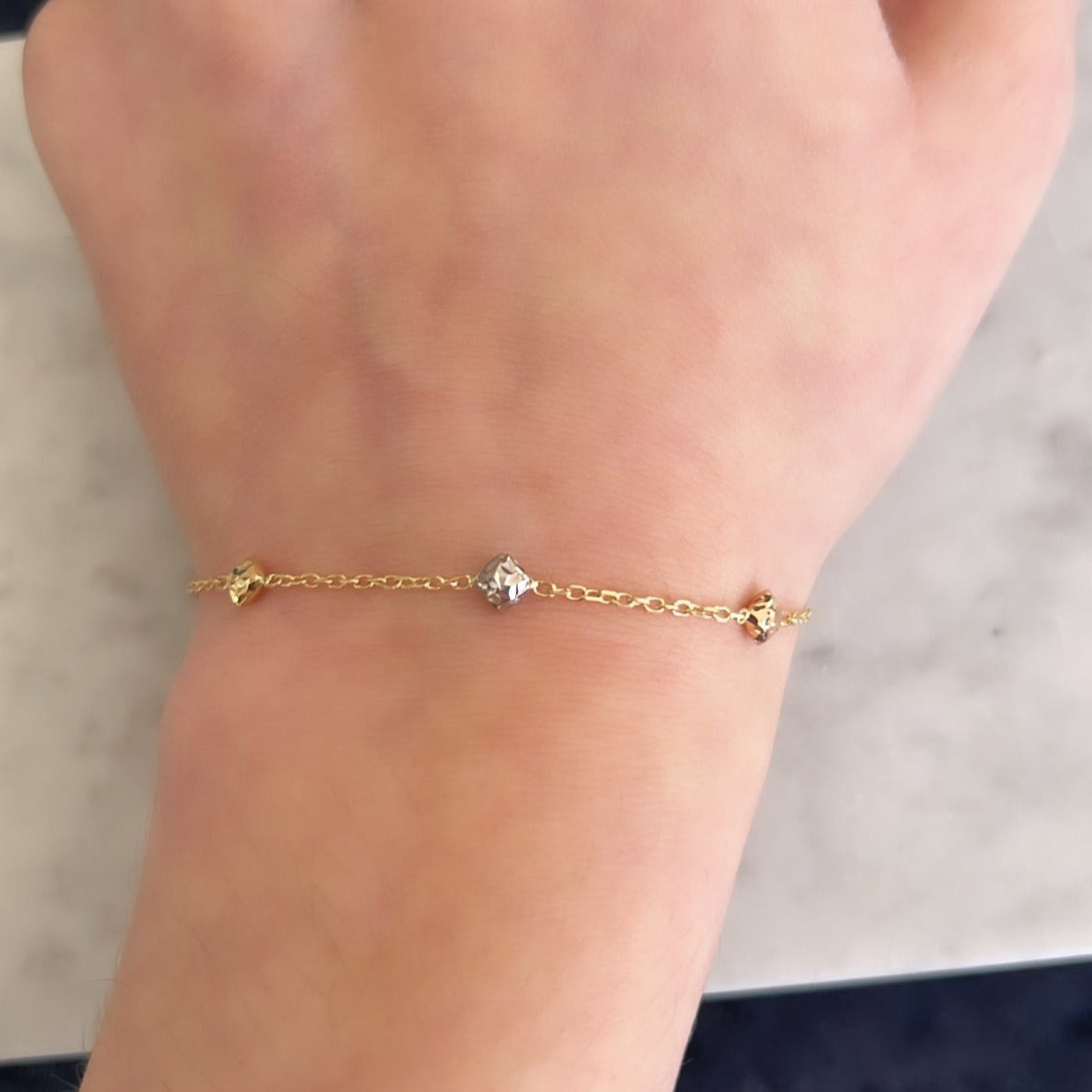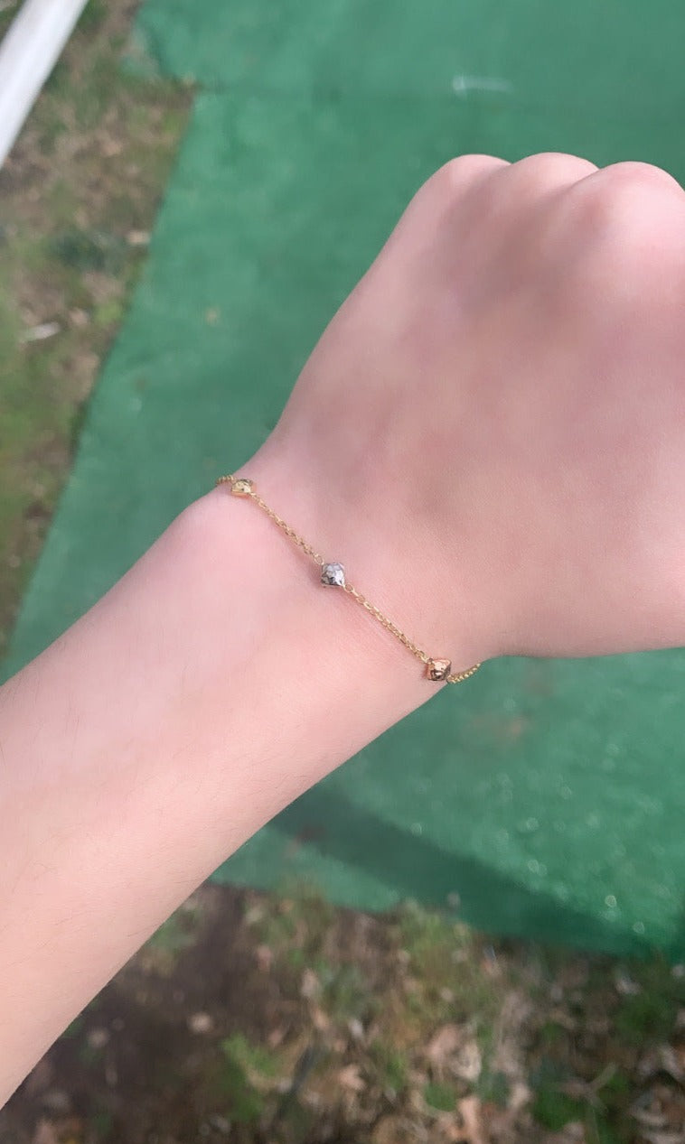 14K Tri Color Gold Square Bead Station Chain Bracelet