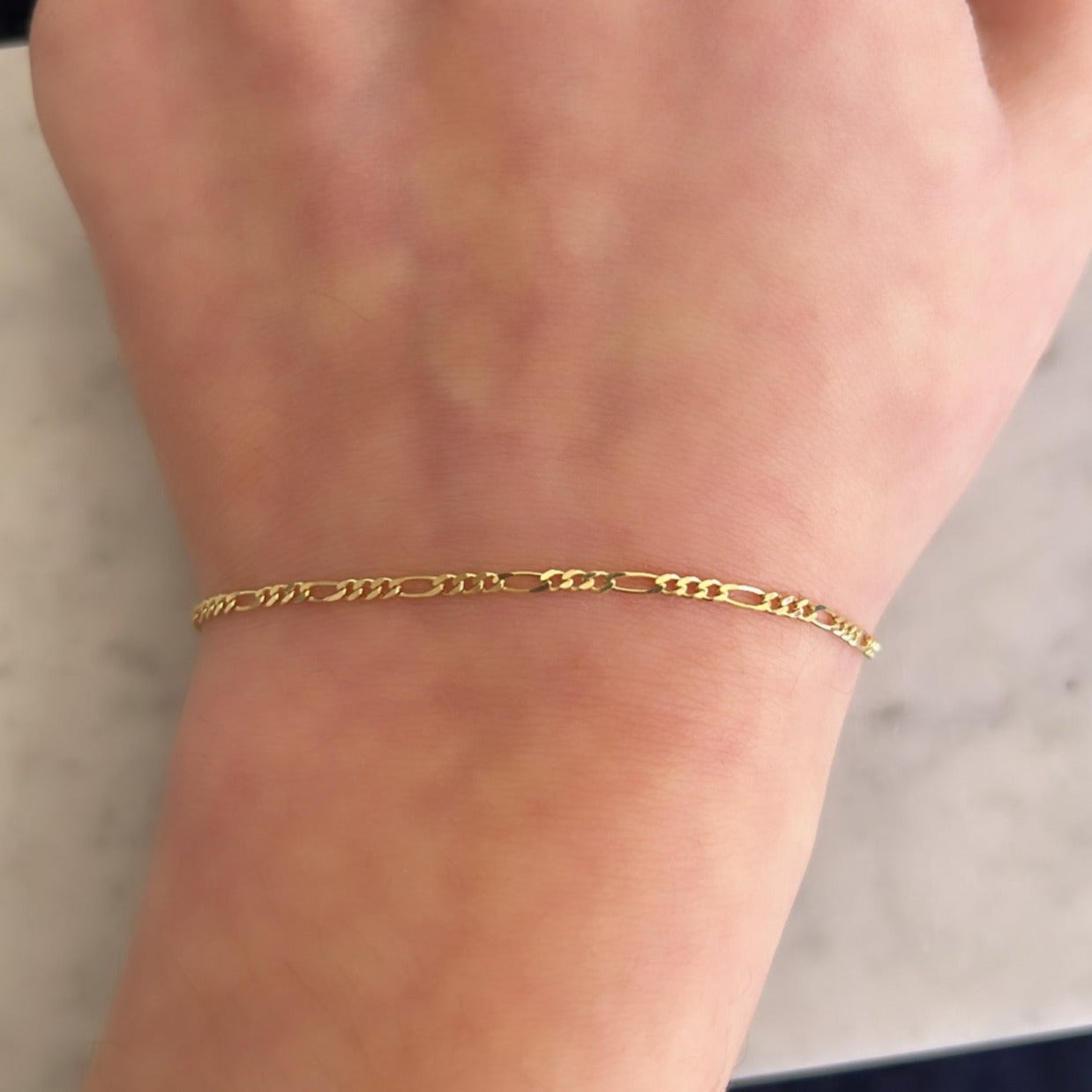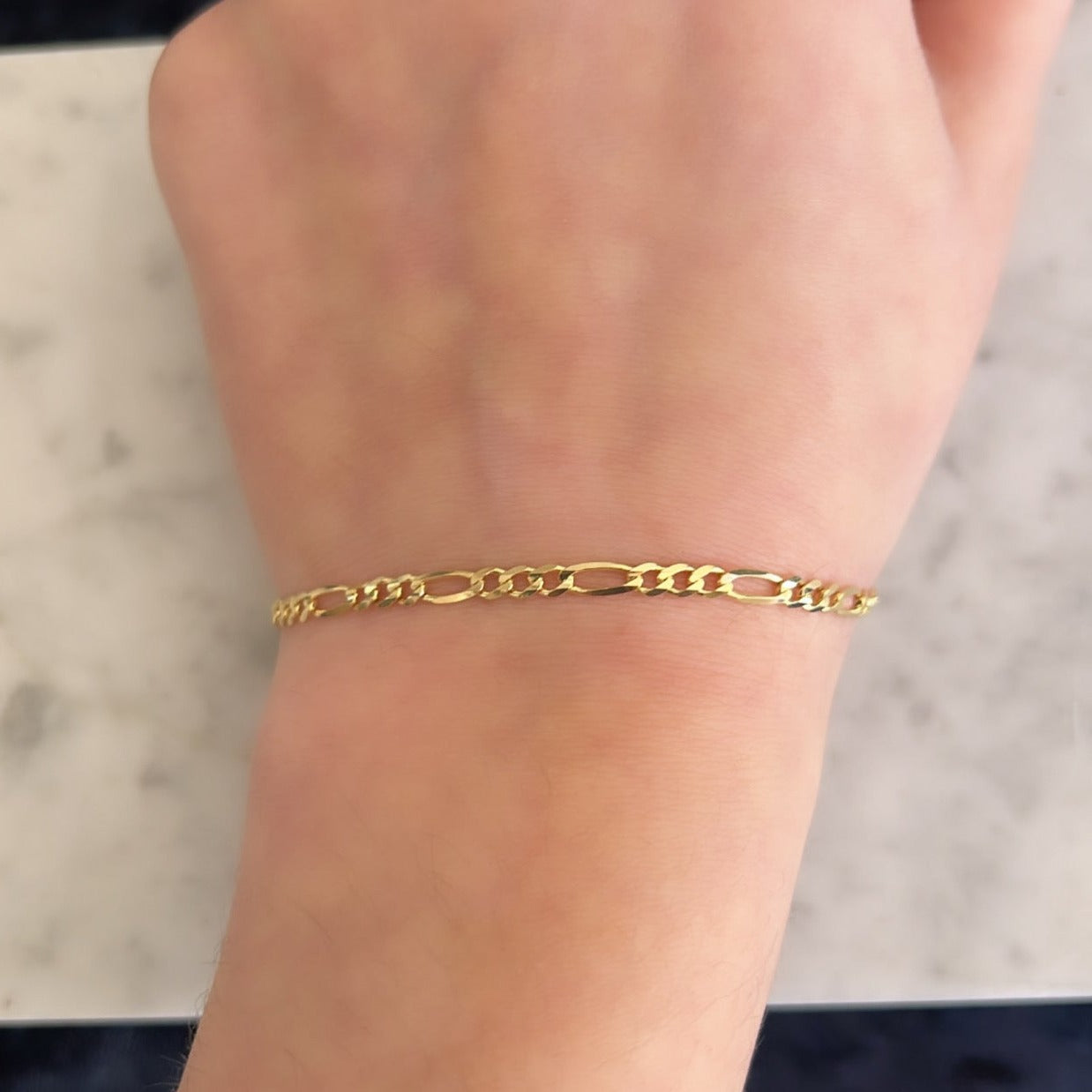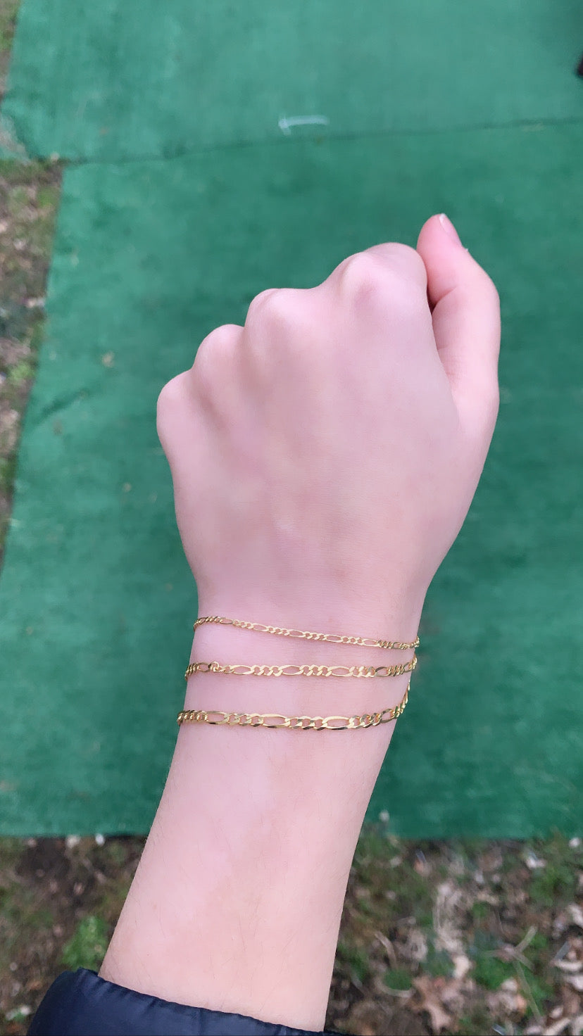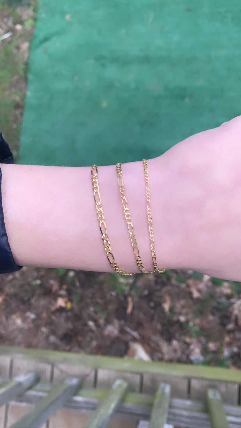 14k Solid Yellow Gold Figaro Link Bracelet 1.9mm, 2.8mm, 3.0mm, 3.8mm, 4.5mm, 6mm