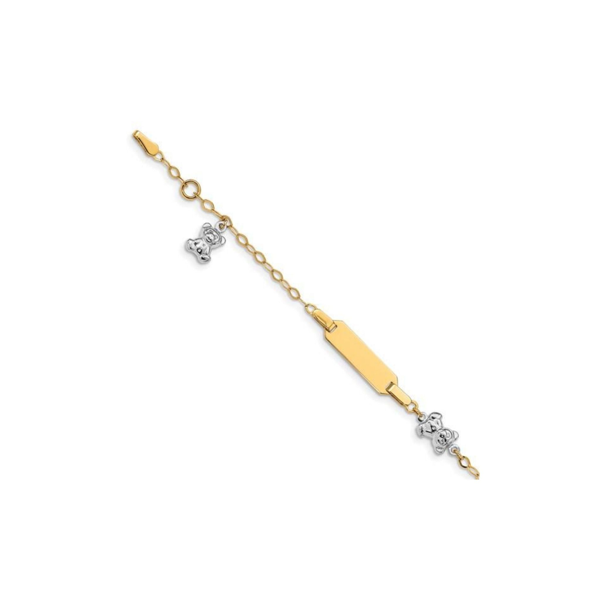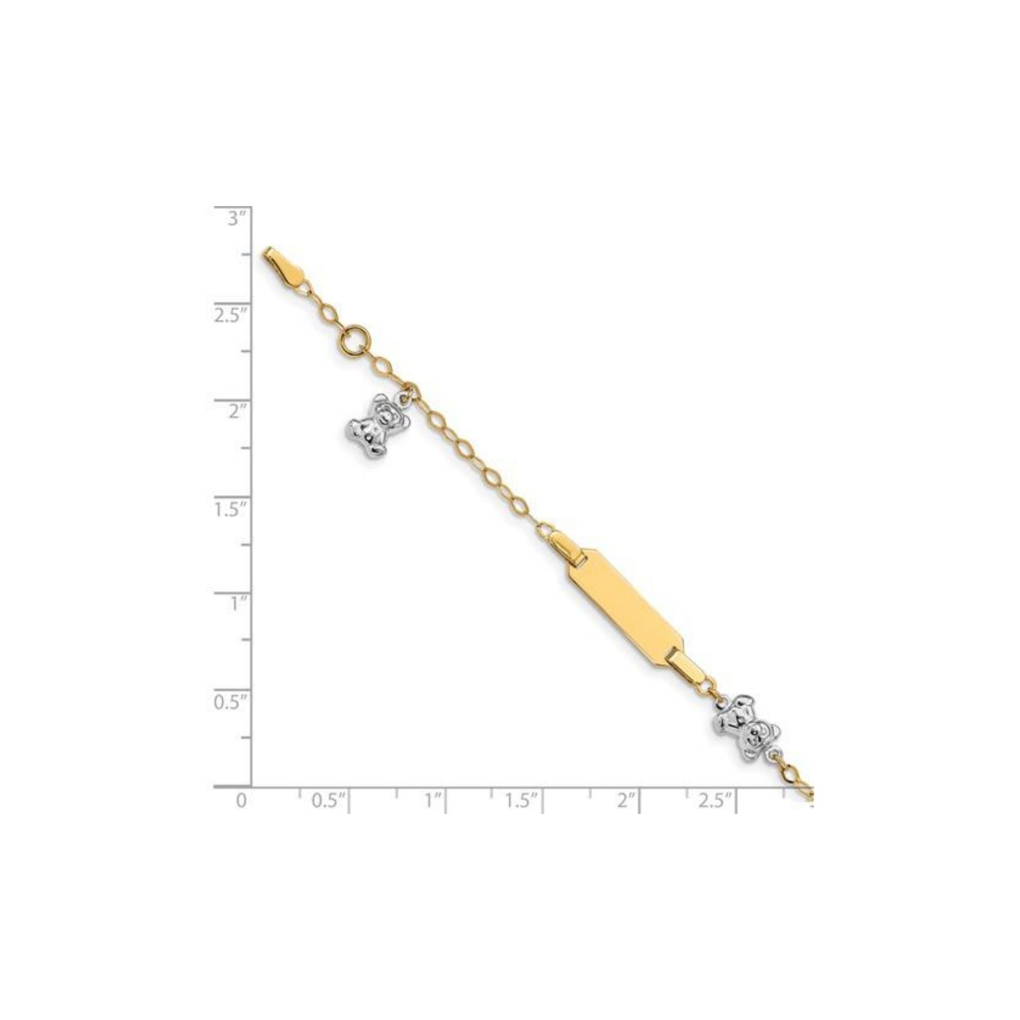 14k Two-tone Children's Polished Teddy Bear .5in ext. ID Engravable Bracelet