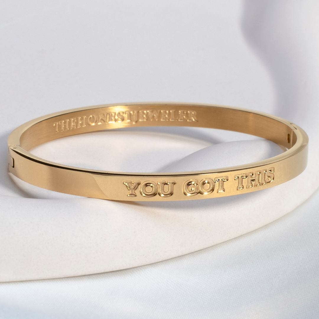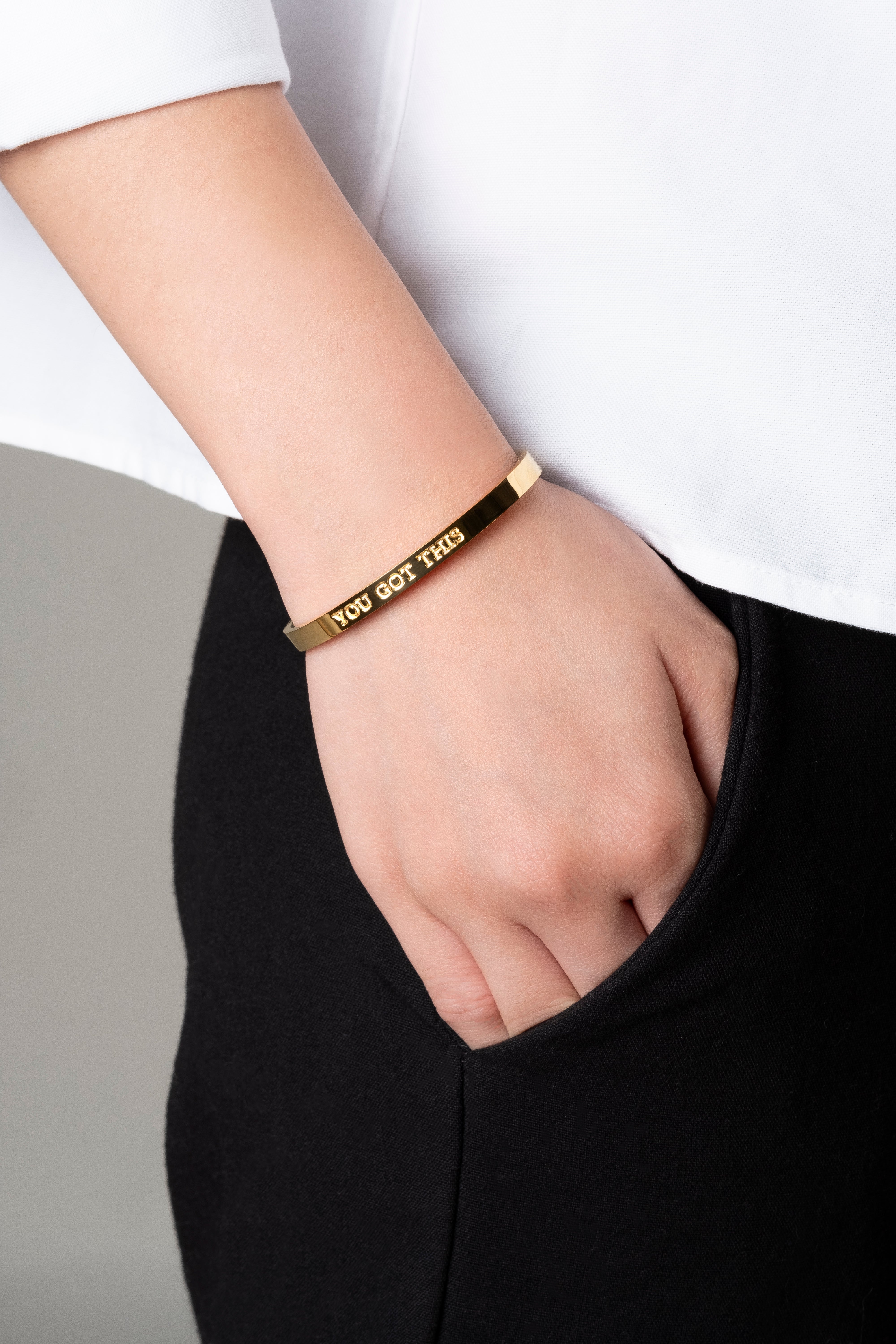 This best-selling bangle features an elegant yet durable design, along with an empowering engraved message to serve as your everyday reminder, affirmation, and inspiration.