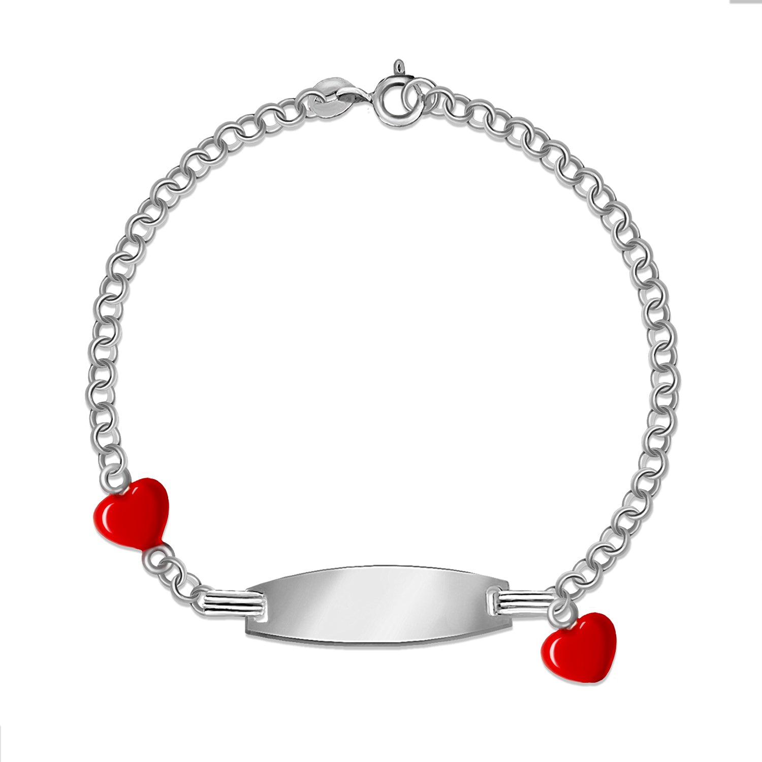 925 Silver Red Enamel Heart ID Children Engravable Bracelet