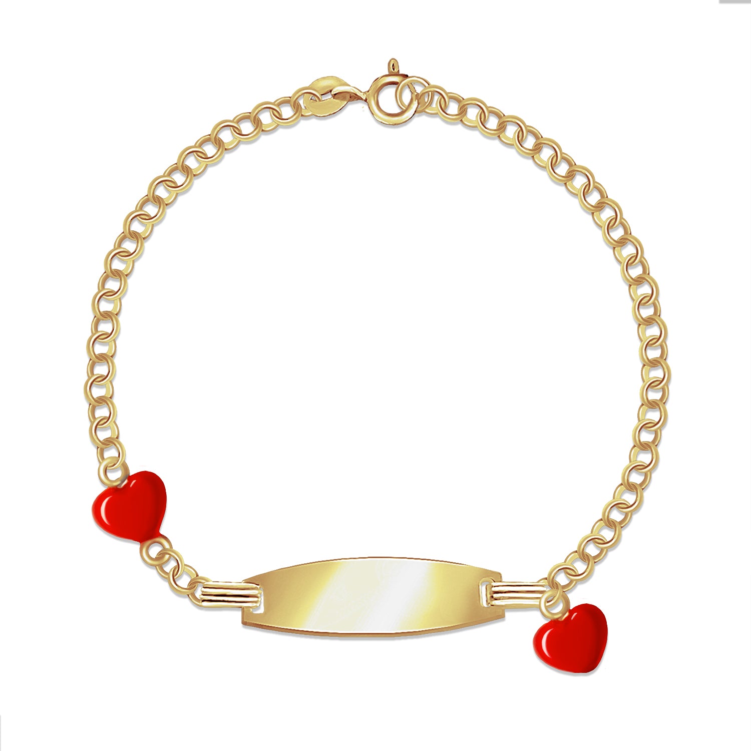 14k Plated 925 Silver Red Enamel Heart ID Children Engravable Bracelet