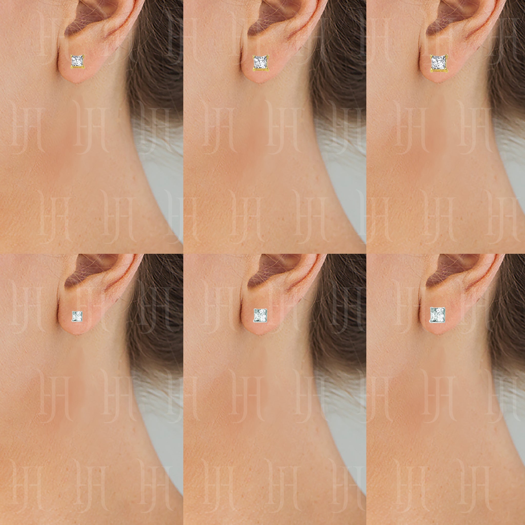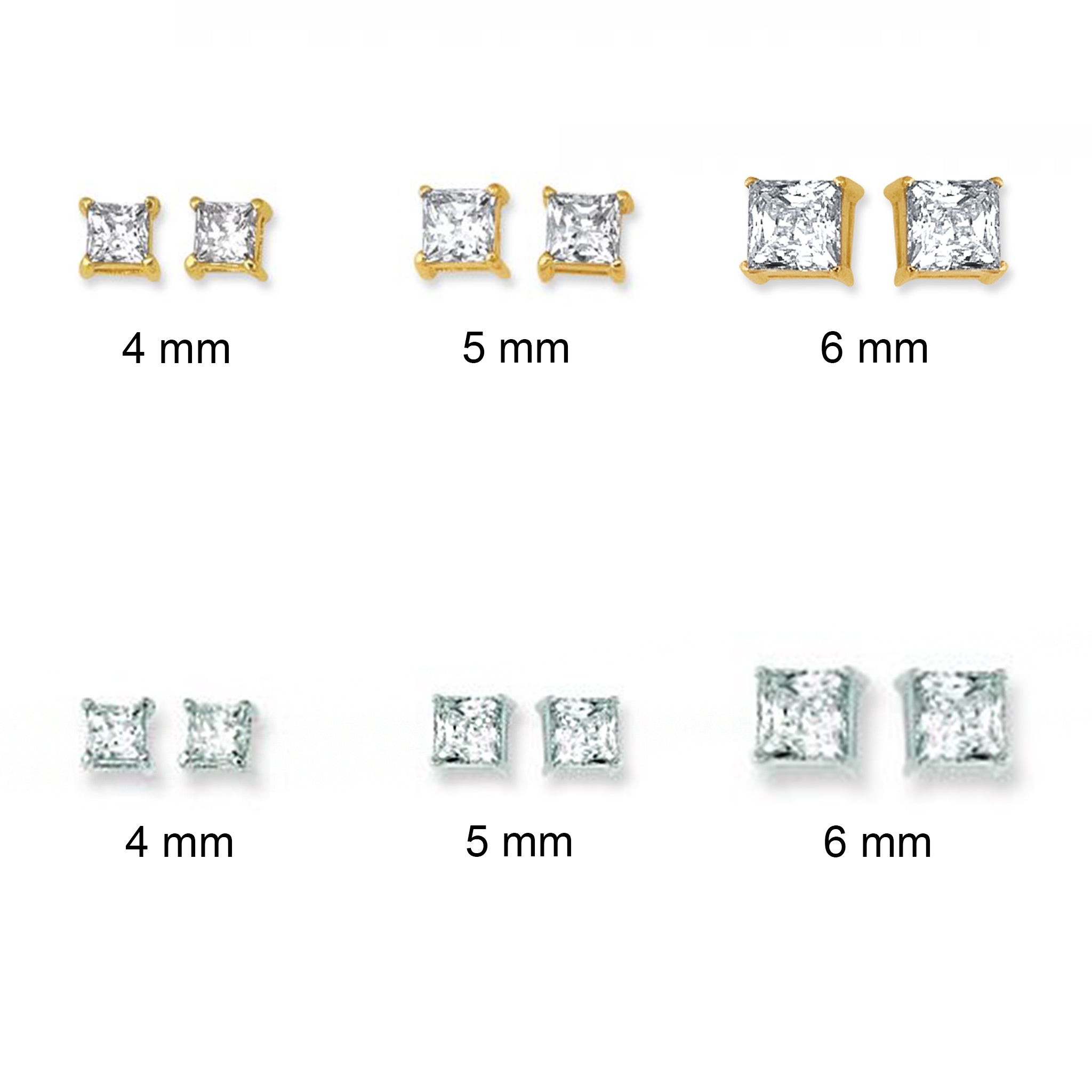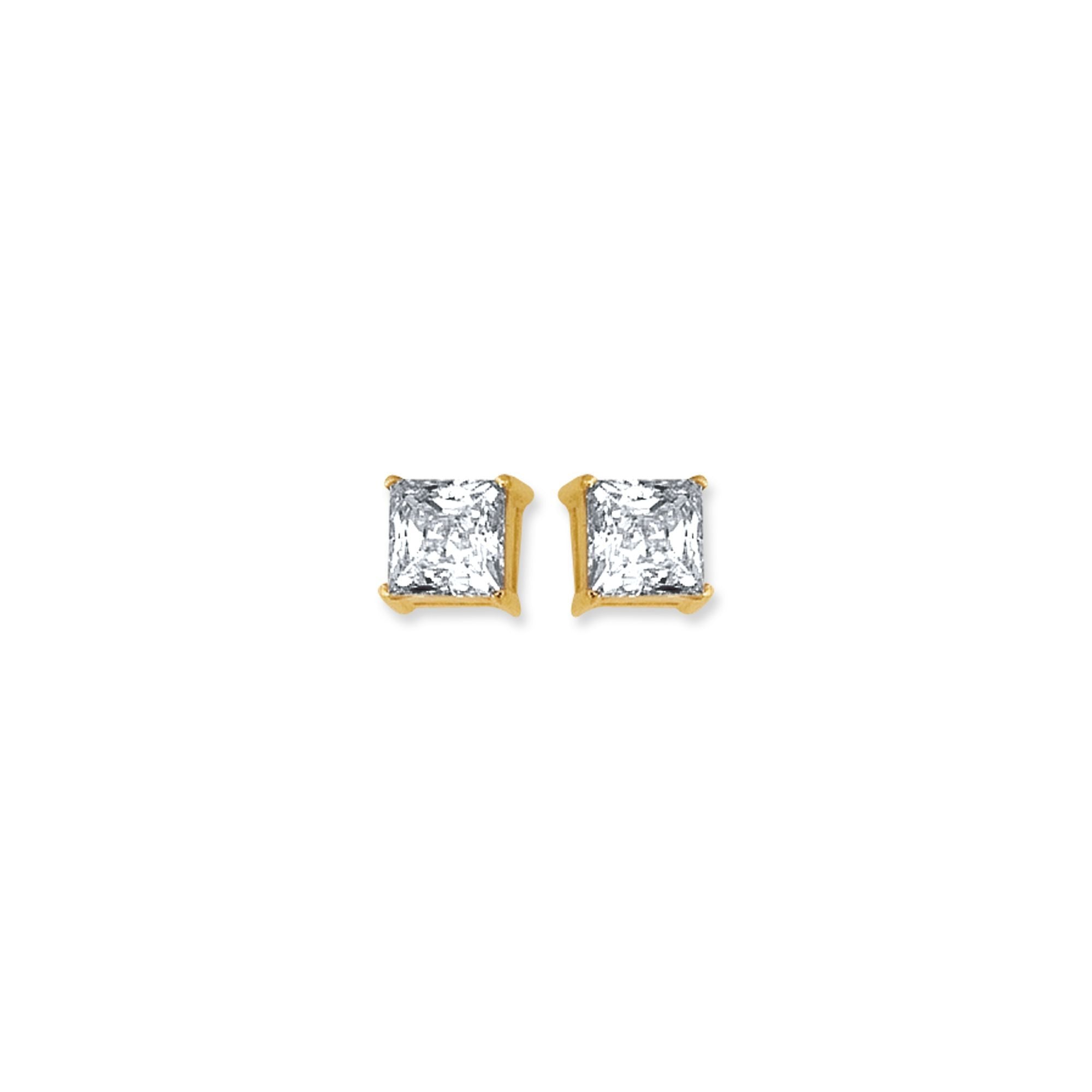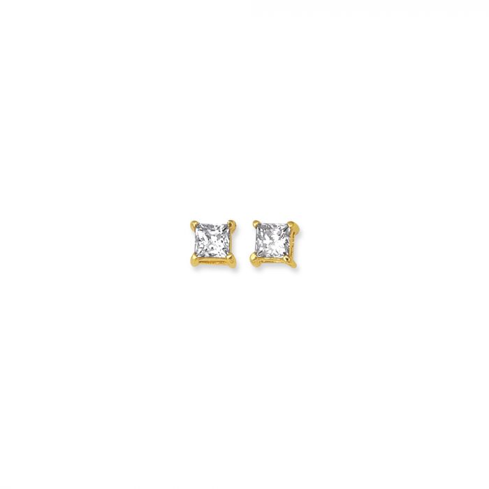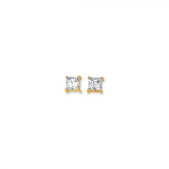 14K Gold Princess Cut CZ Stud Earrings