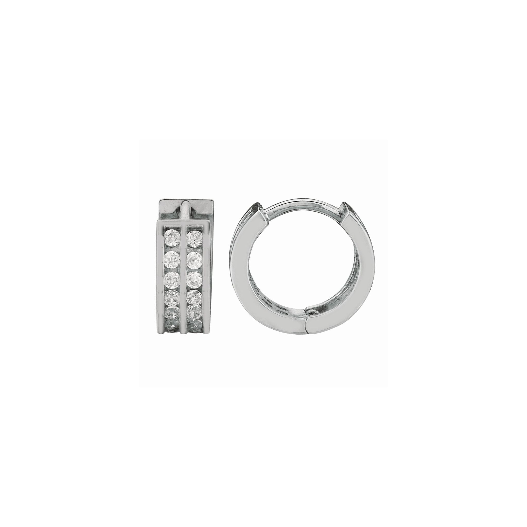 925 Silver 4x10mm Double Row CZ Hoops Earrings