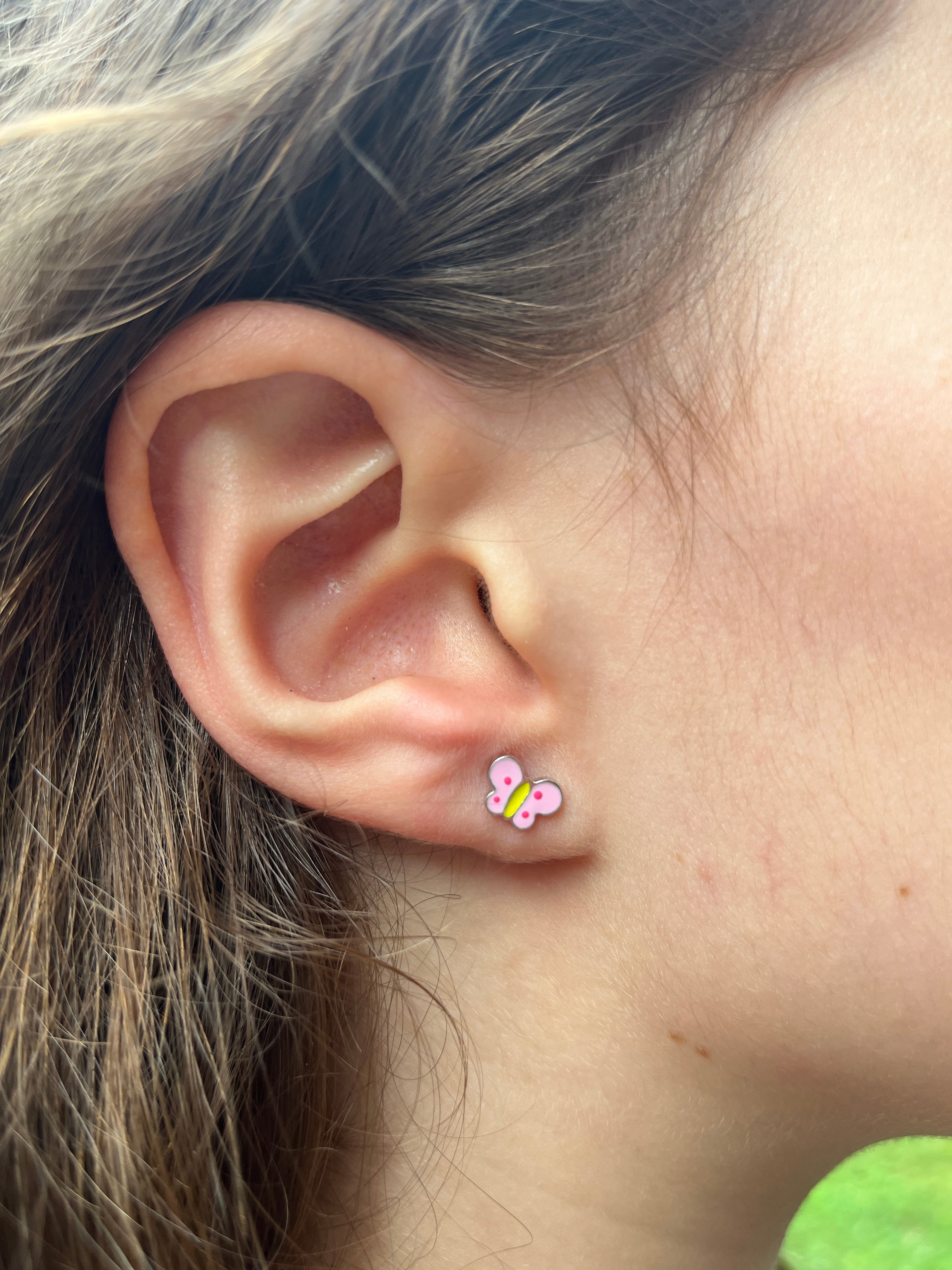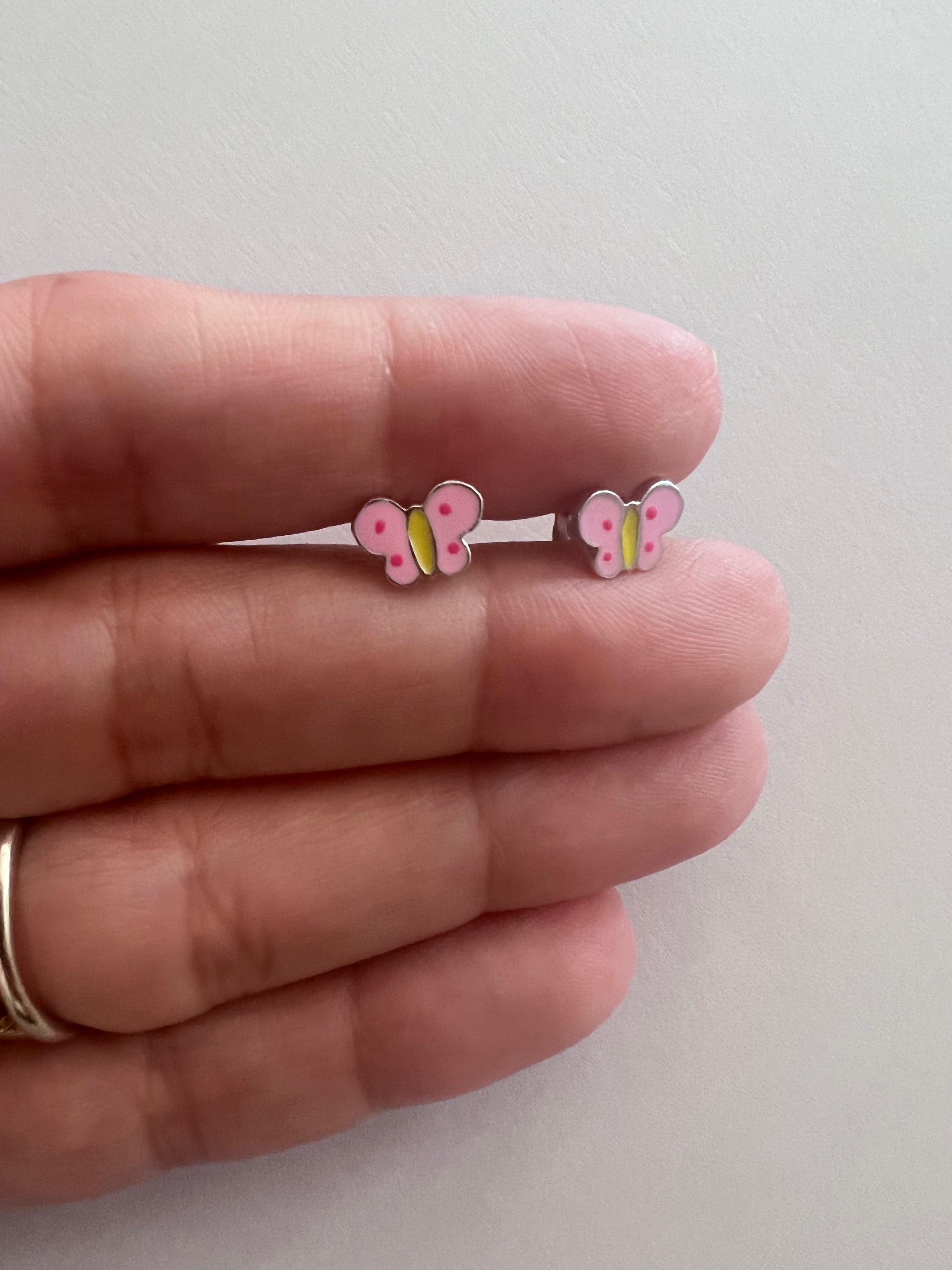 925 Sterling Silver Enamel Butterfly Studs Earrings