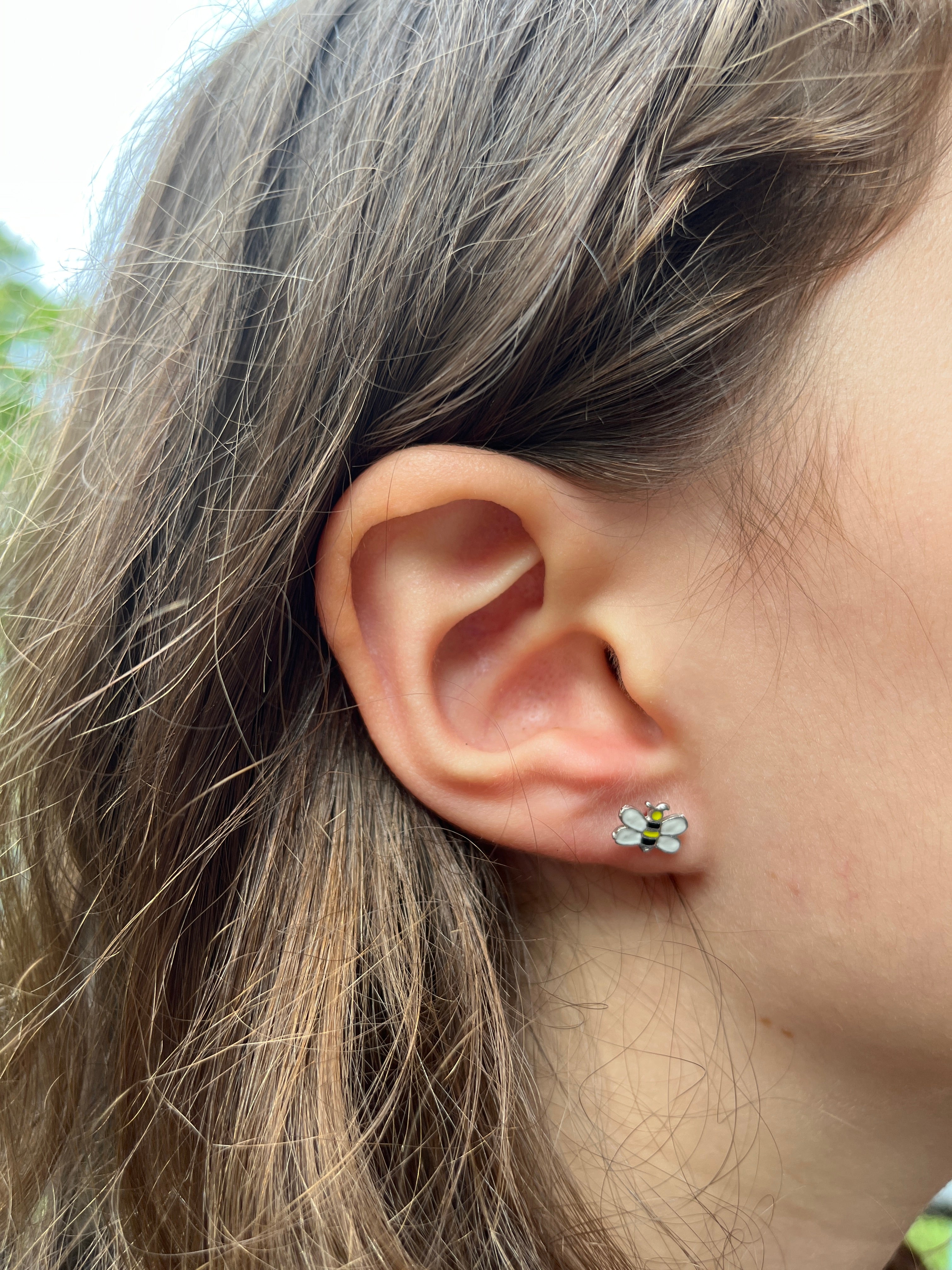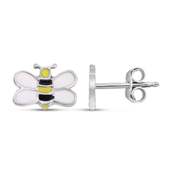 Silver Enamel Bumble Bee Studs