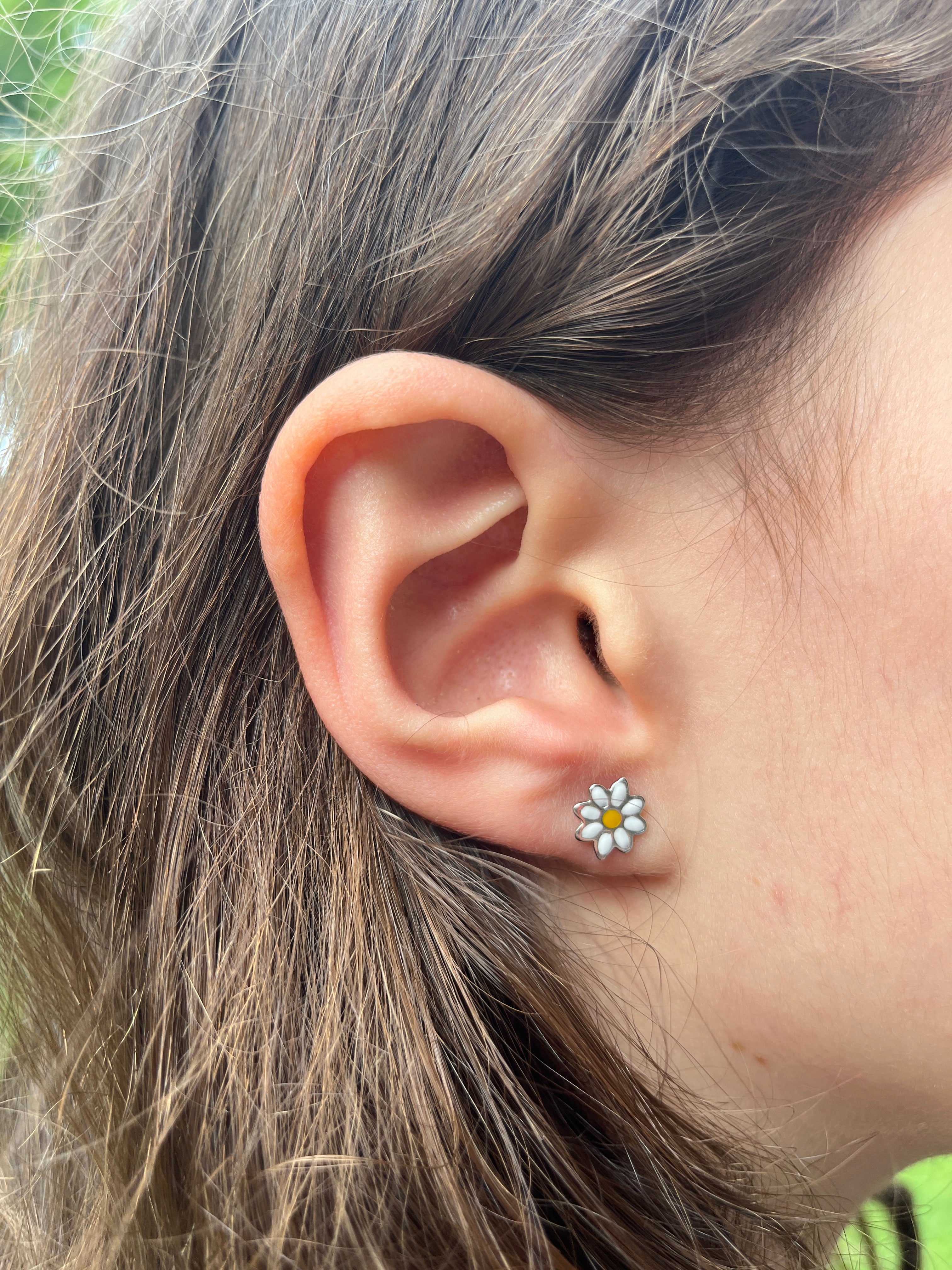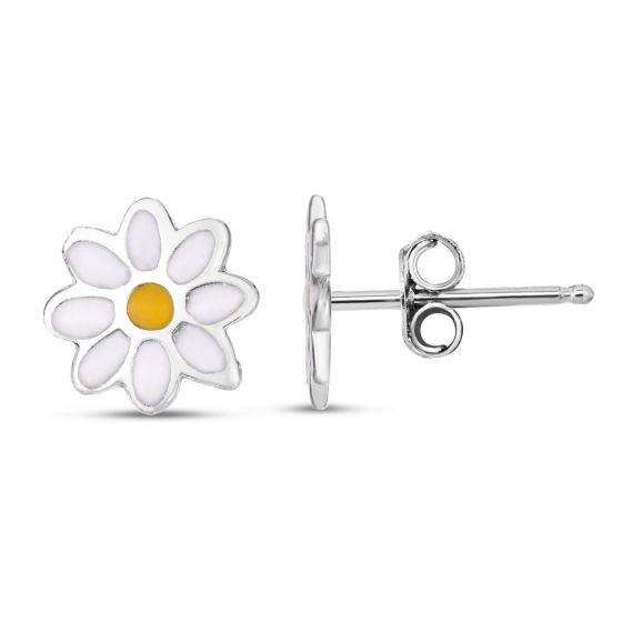 Sterling Silver Enamel Flower Daisy Stud Earrings