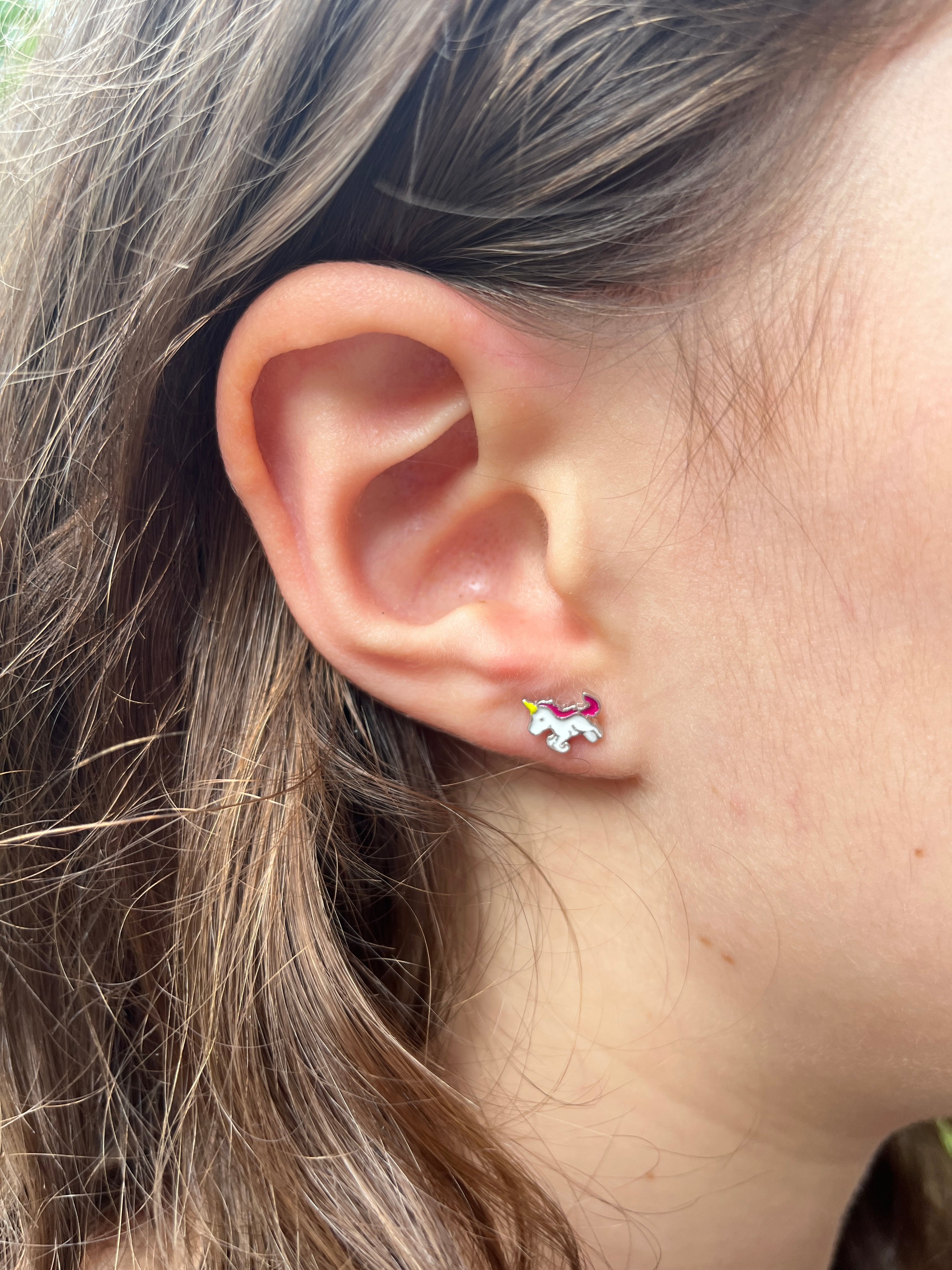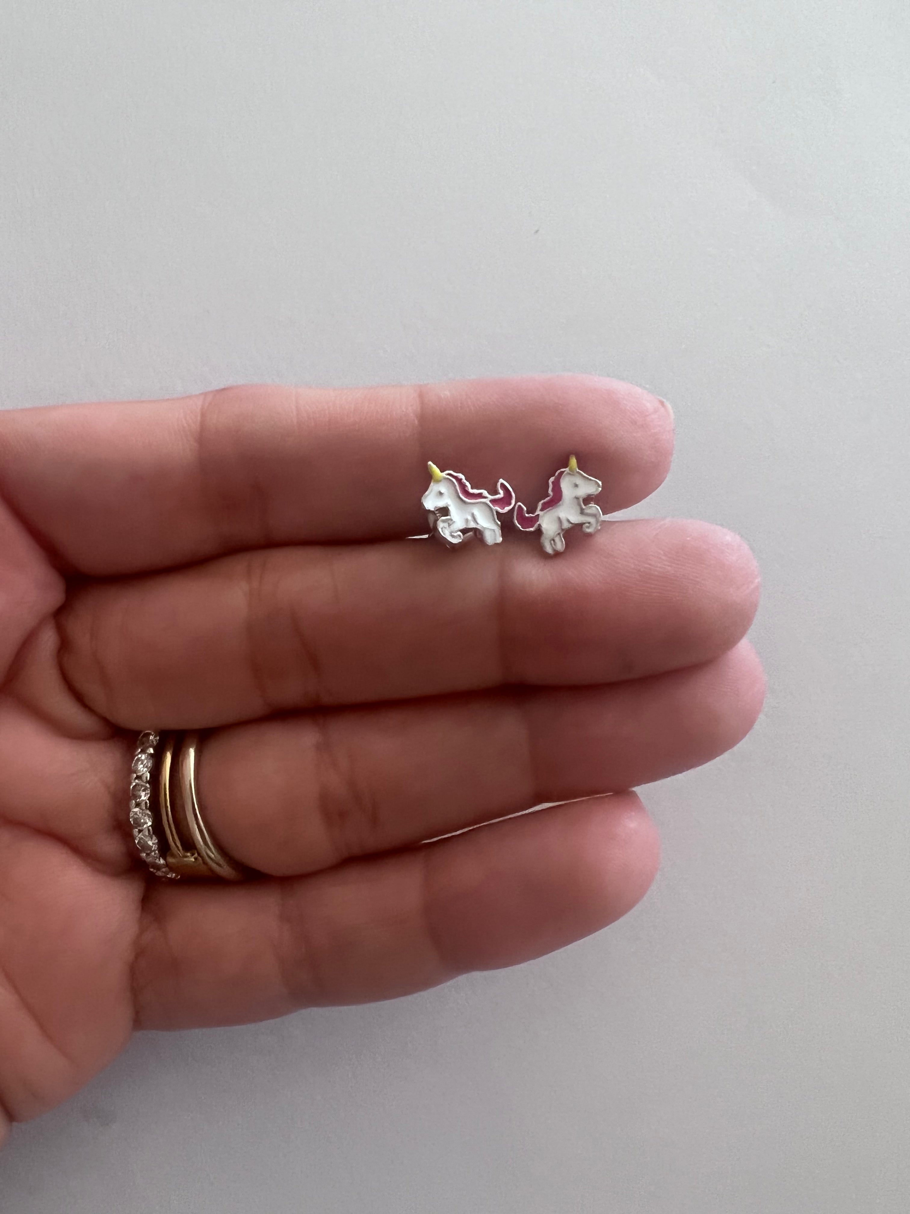 925 Solid Silver Enamel Unicorn Studs Earrings