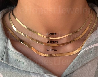 10k Solid Yellow Gold High Polish Herringbone Necklace/Bracelet Chain 7"-24" 2.8mm 3.8mm 4.6mm