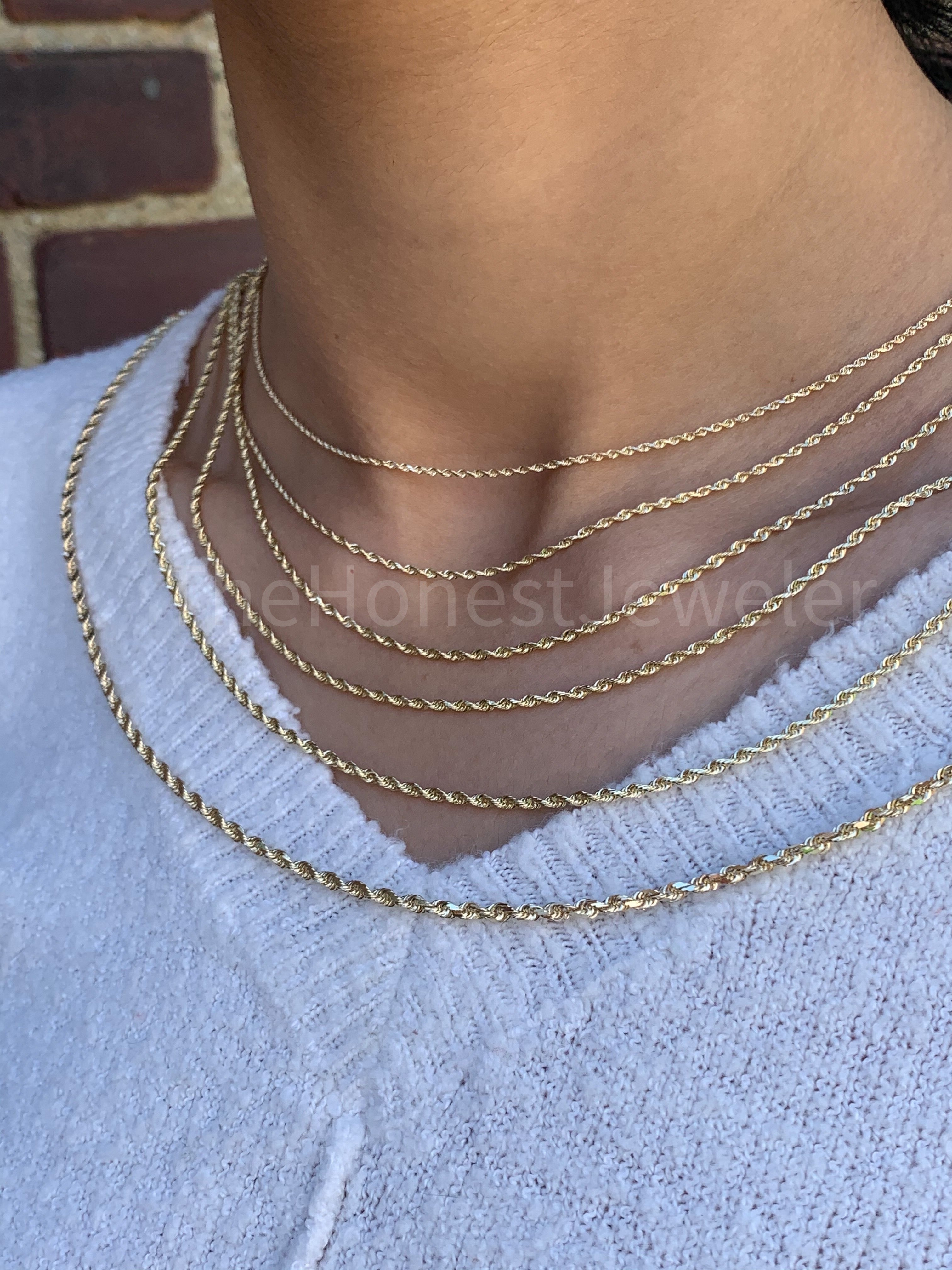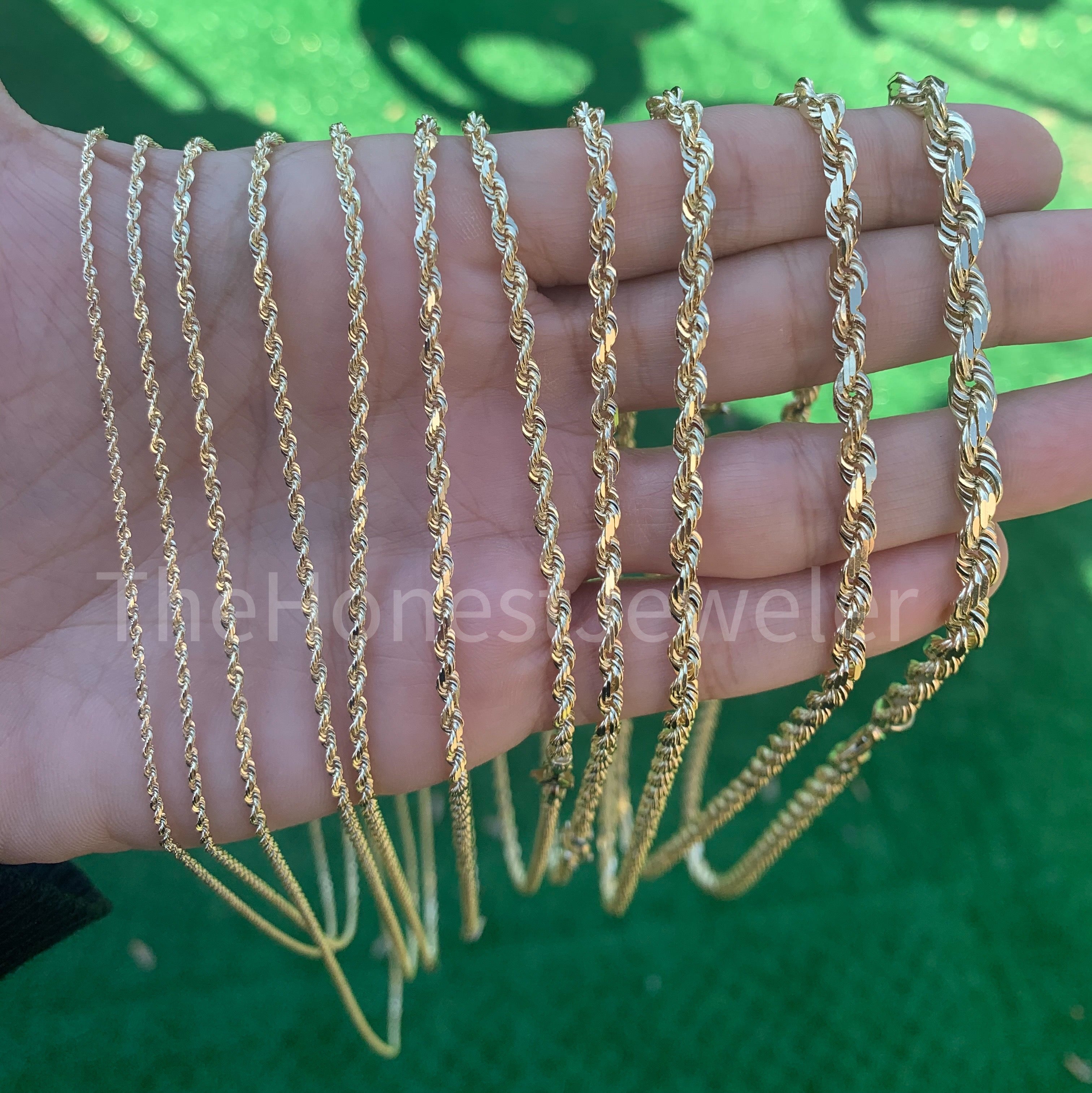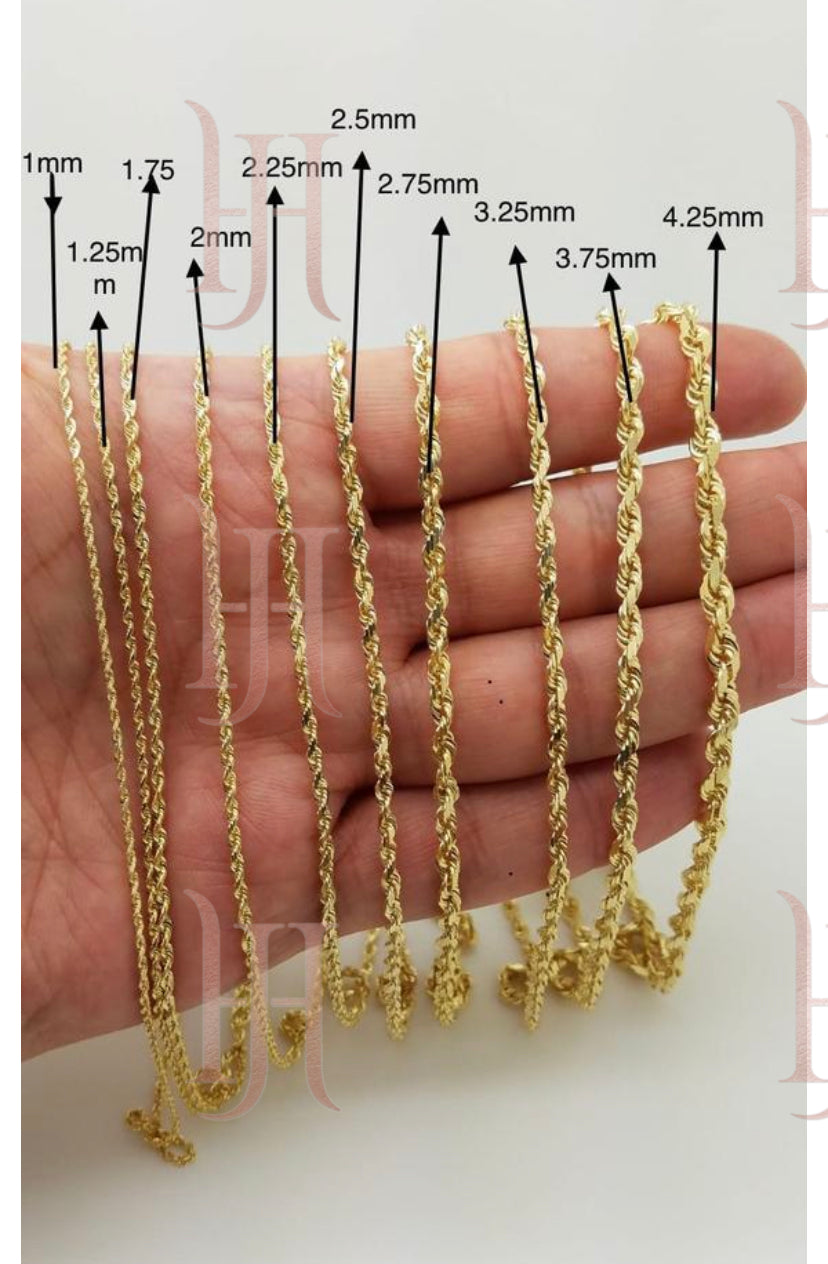 14k Solid Yellow Gold Diamond Cut Twist Rope Chain