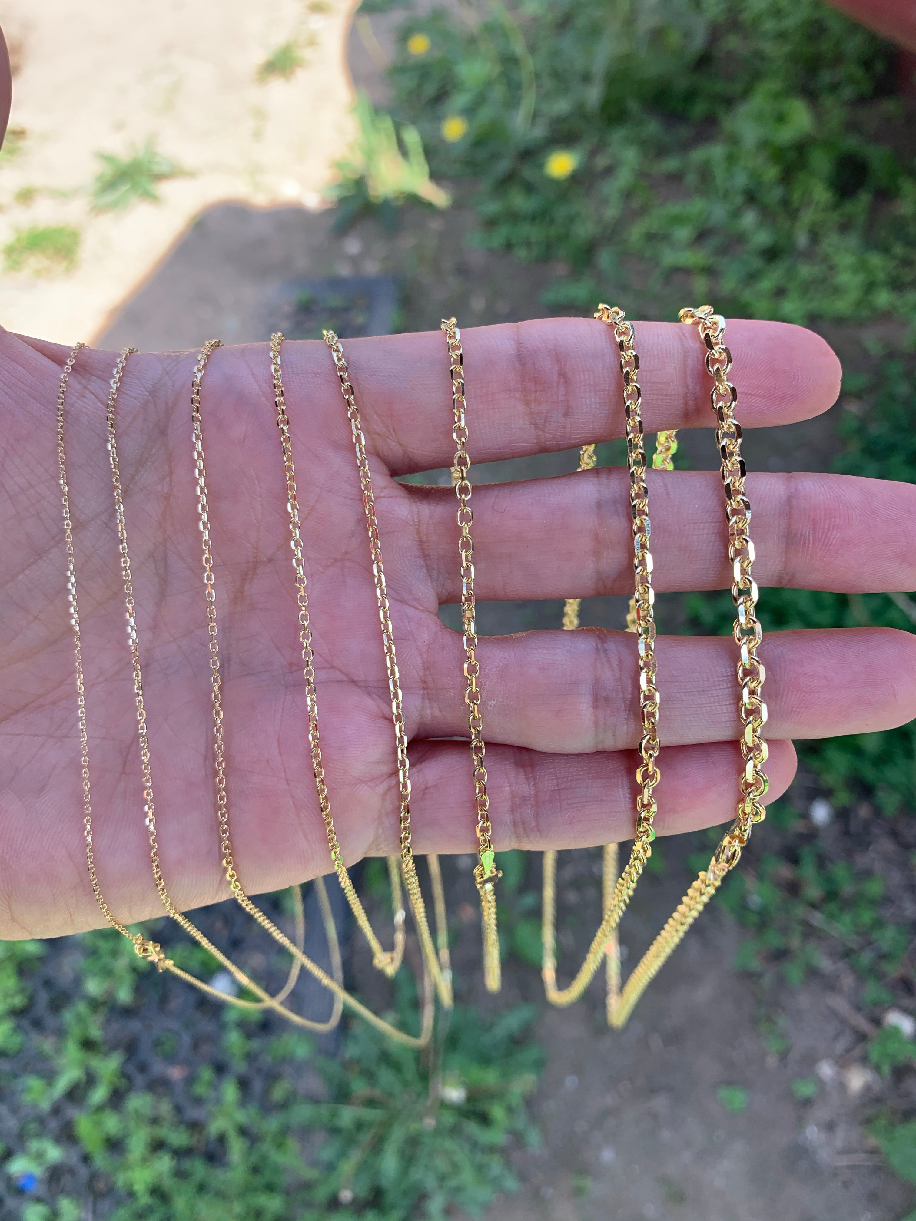 14k Solid Yellow Gold High Polish Cable Link Pendant Necklace Chain