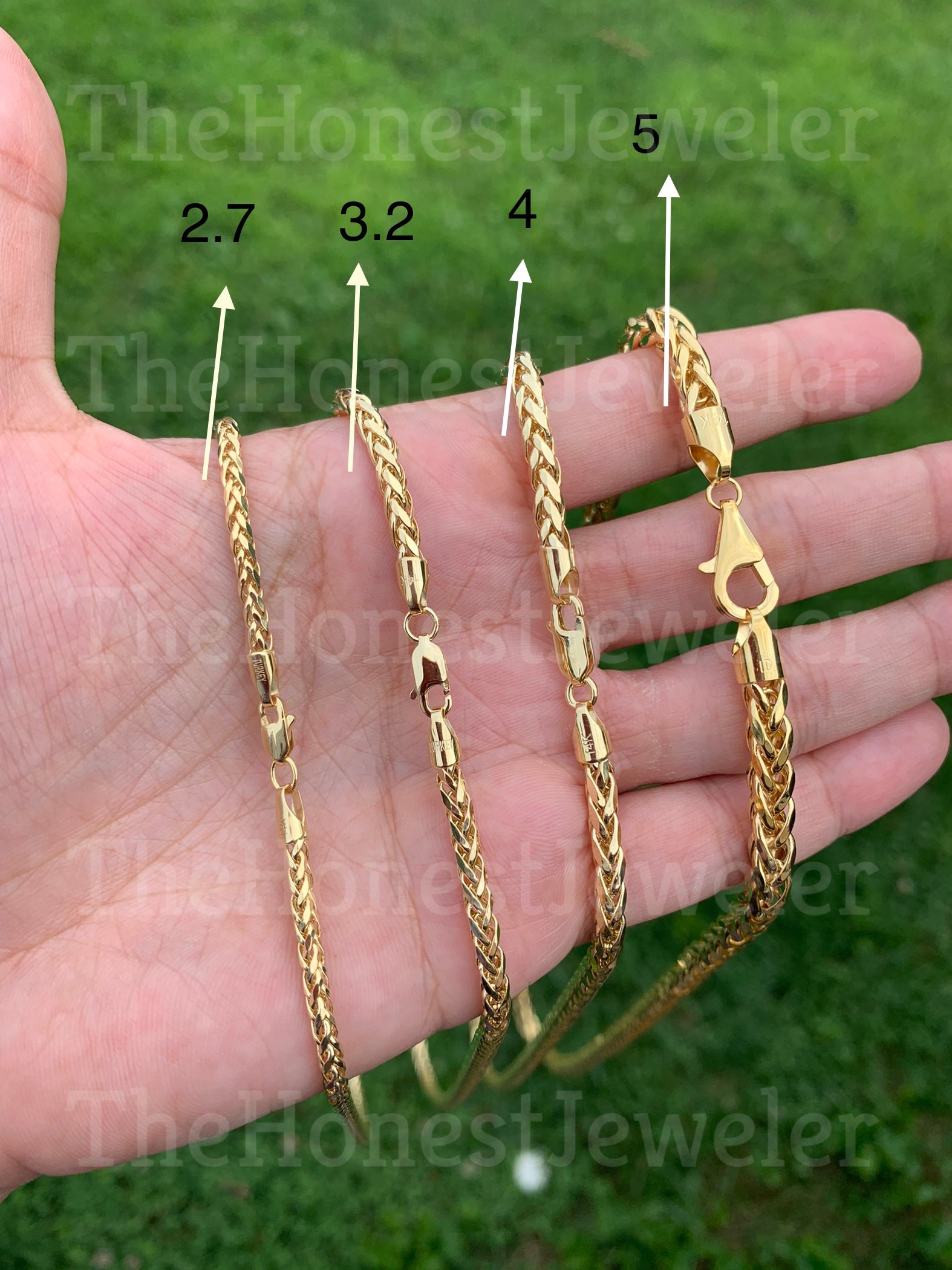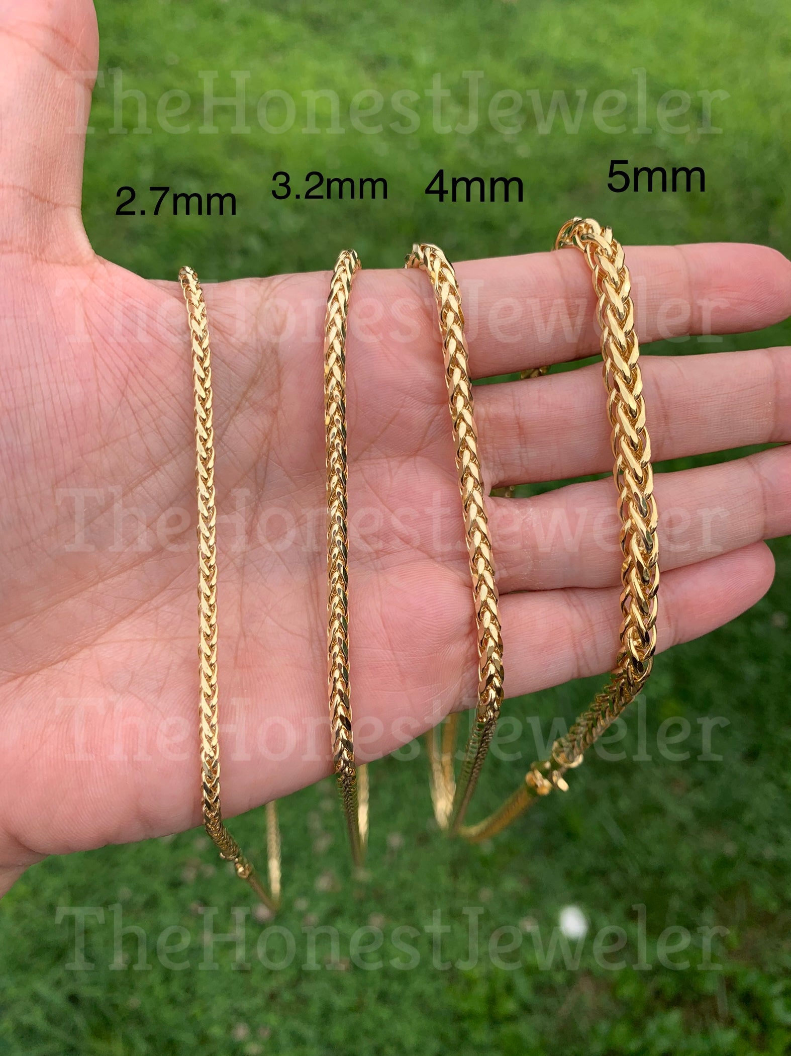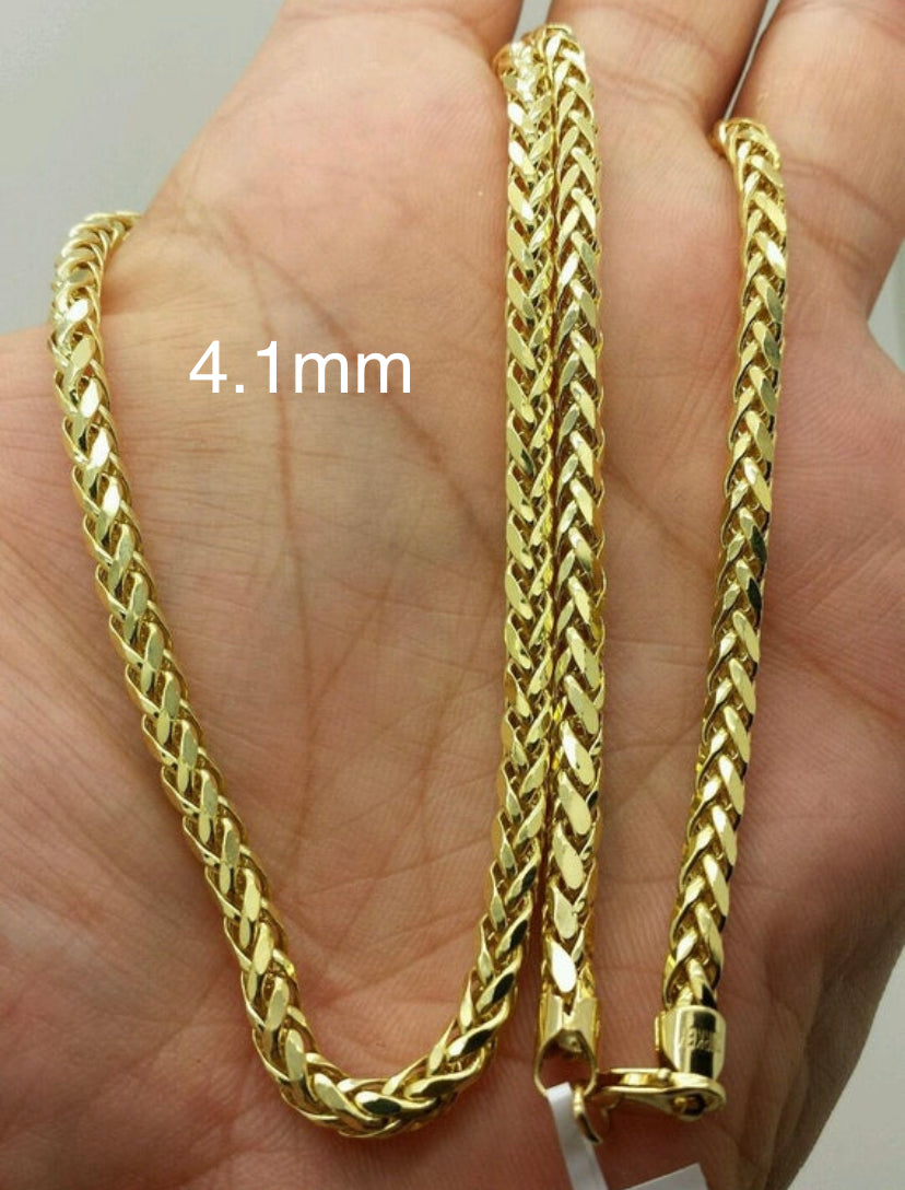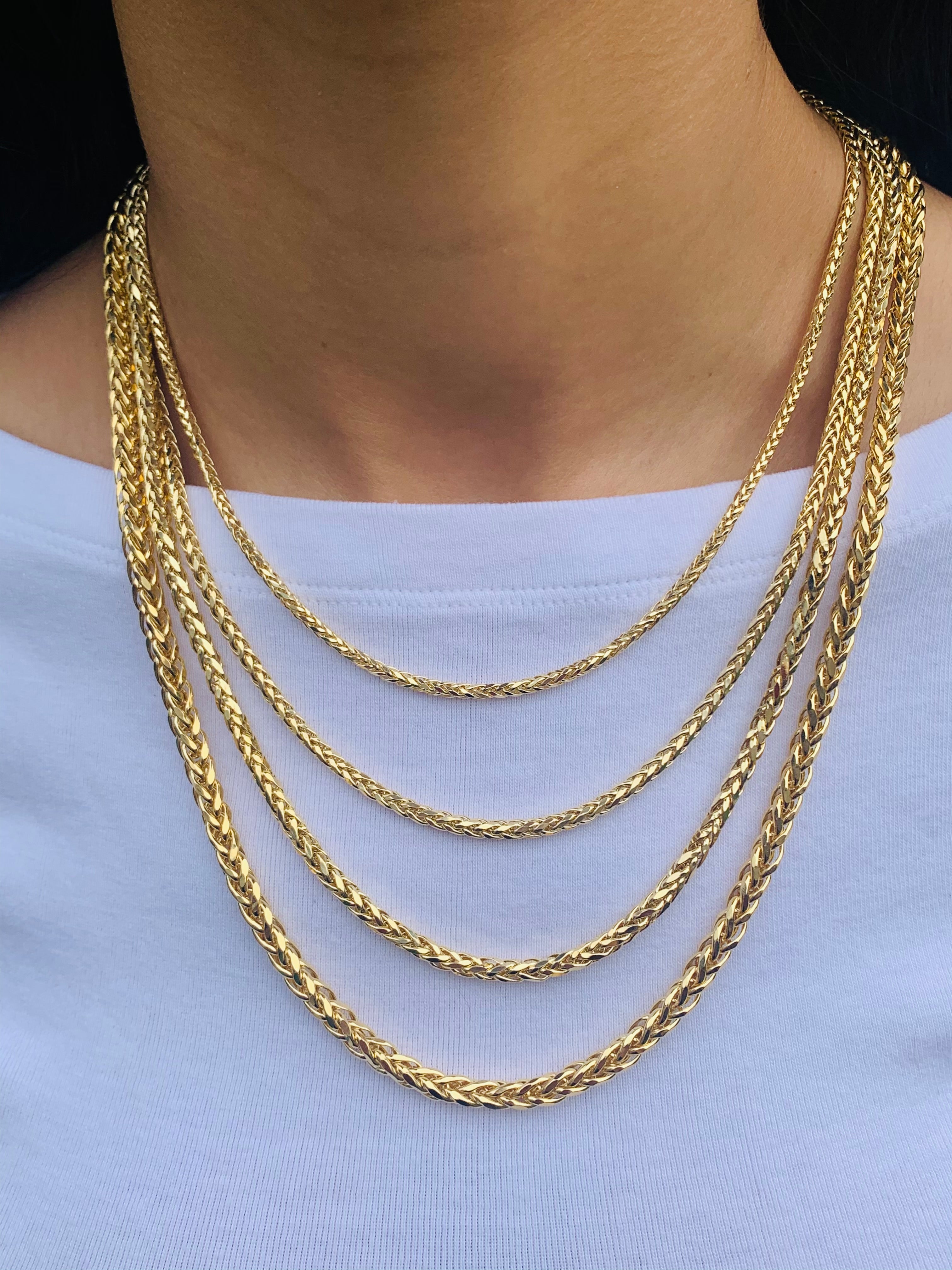 14k Yellow Gold Lite Round Diamond Cut Wheat Franco Chain 2.7, 3.2, 4.0, 5.0mm