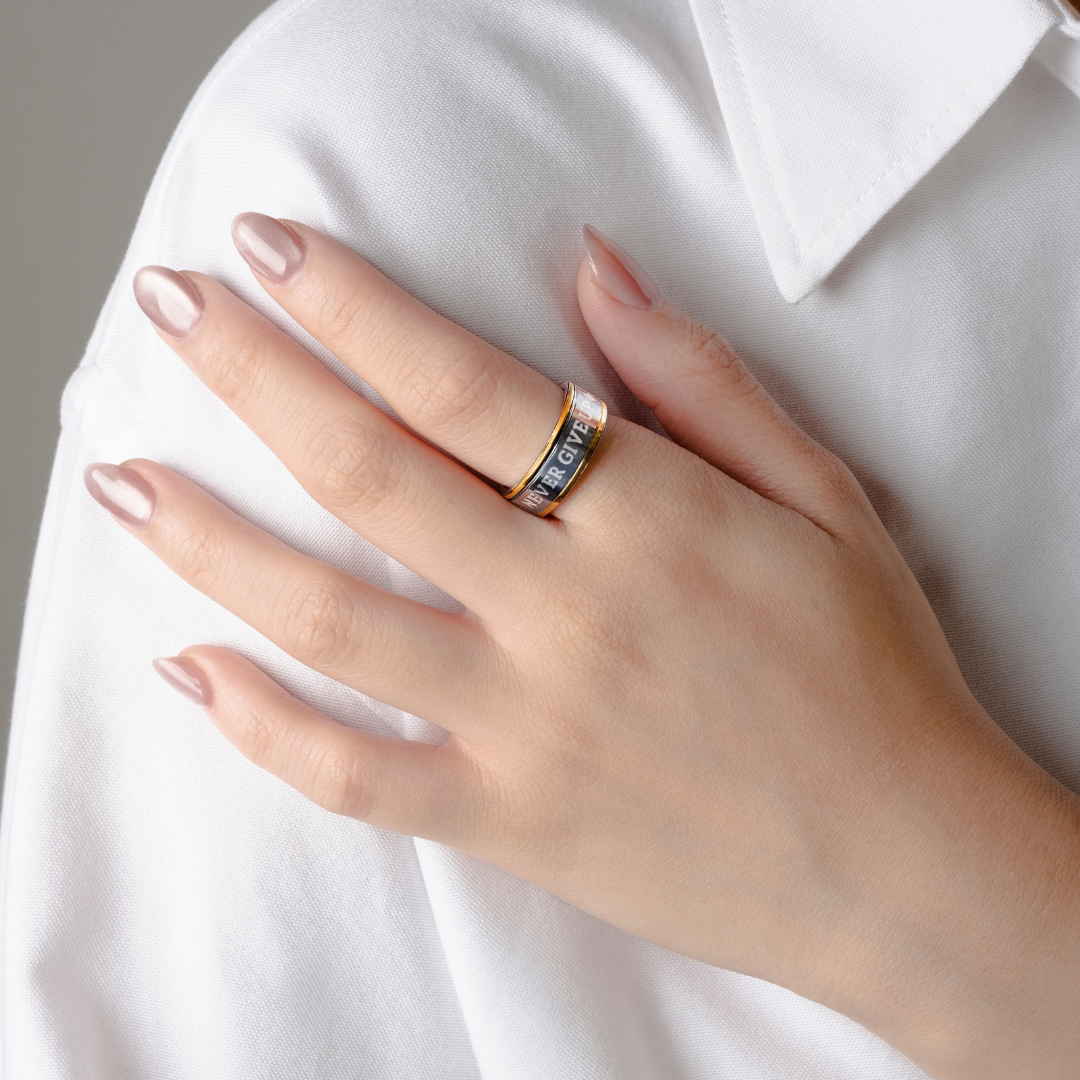 Never Give Up, Embrace The Journey Spinner Ring