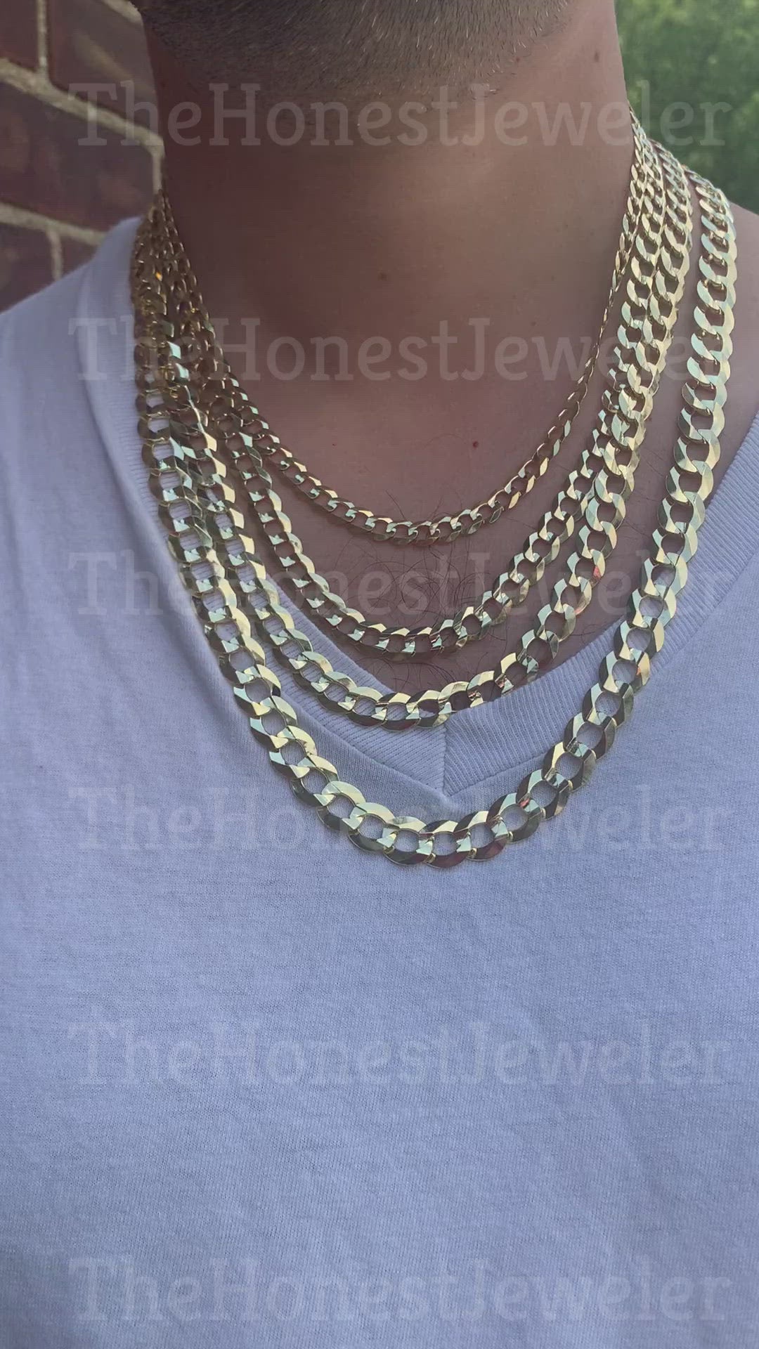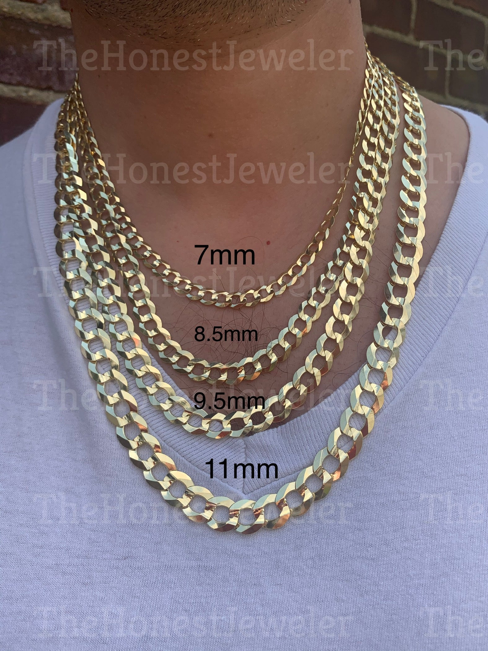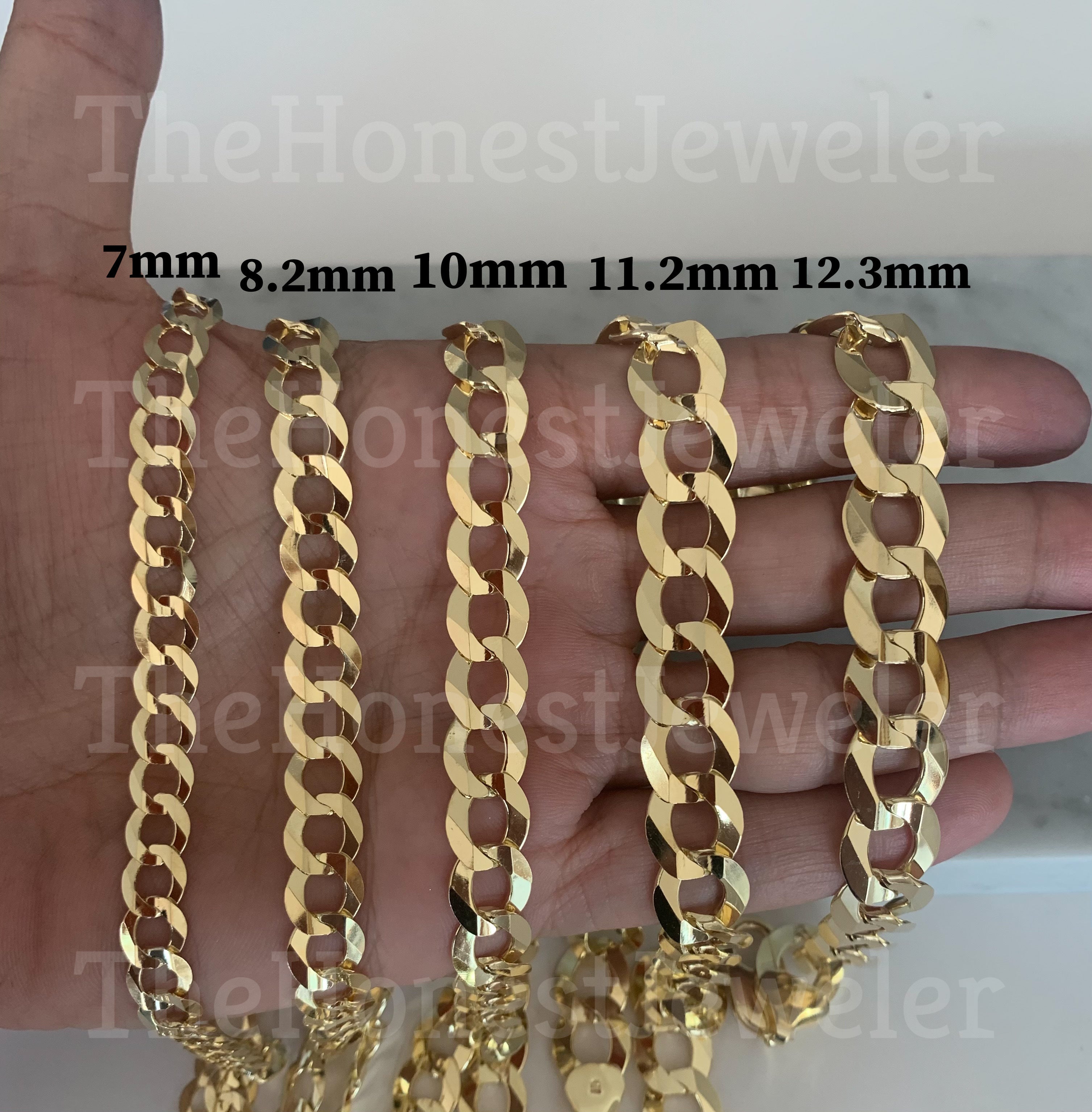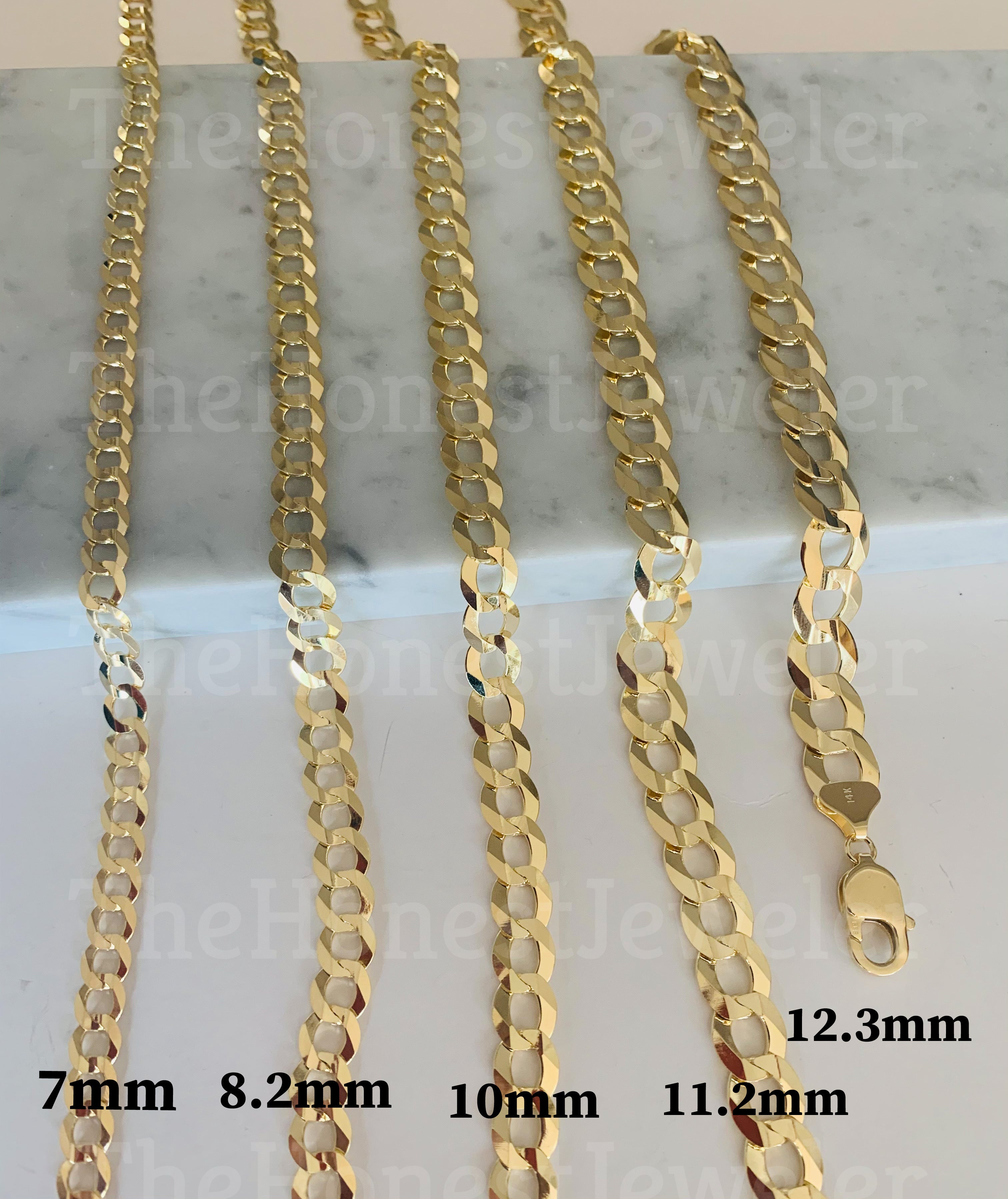 14k Solid Yellow Gold Cuban Curb Link Chain 7mm, 8.2mm,10mm